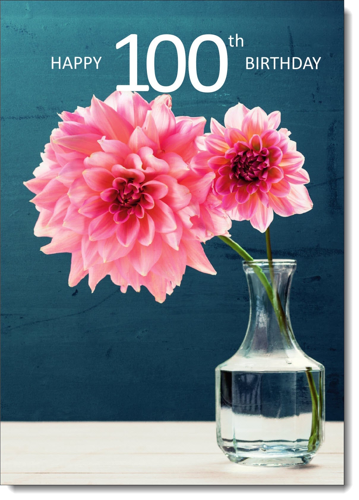 100th Birthday Card Age 100 for Her Large Pink Flowers