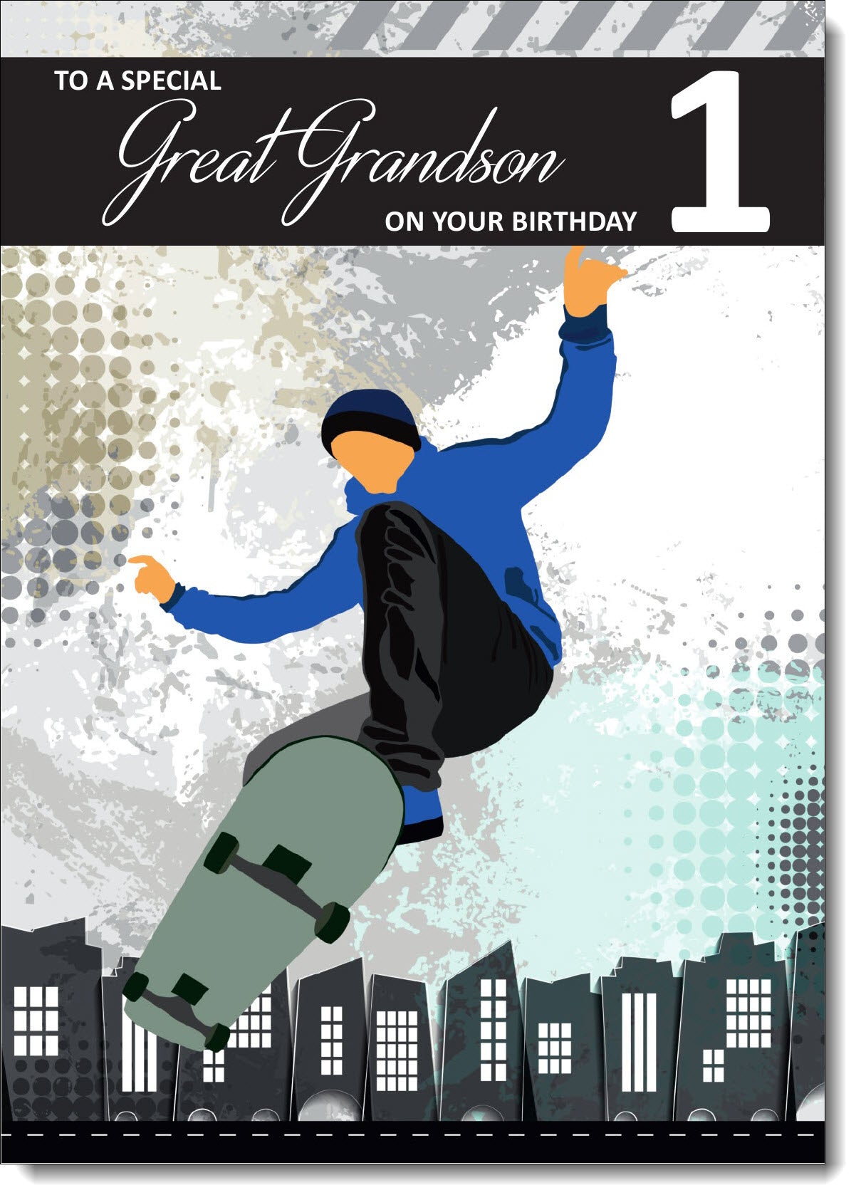 Great Grandson 1st Birthday Card Age 1 Skateboarding