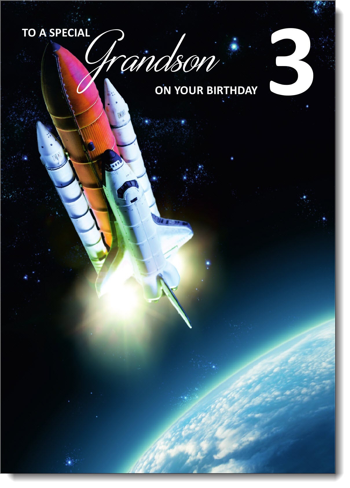 Grandson 3rd Birthday Card Age 3 Rocket Ship in Space