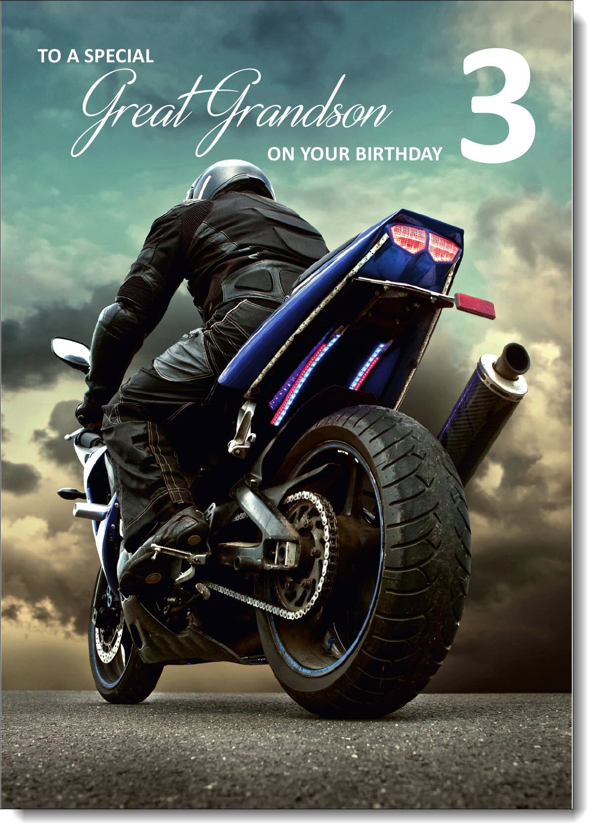 Great Grandson 3rd Birthday Card Age 3 Motorbike
