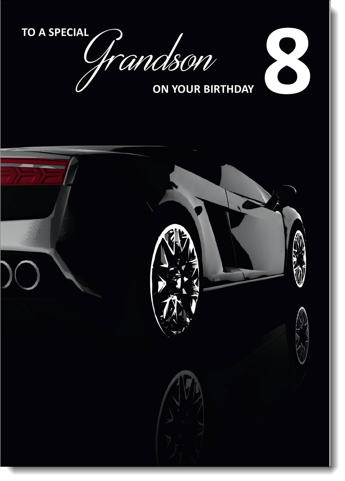 Grandson 8th Birthday Card Age 8 Black Lamborghini