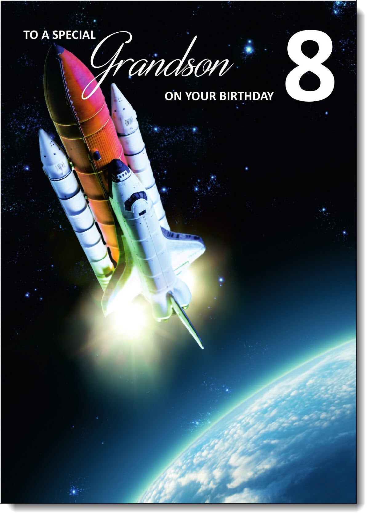 Grandson 8th Birthday Card Age 8 Rocket Ship in Space