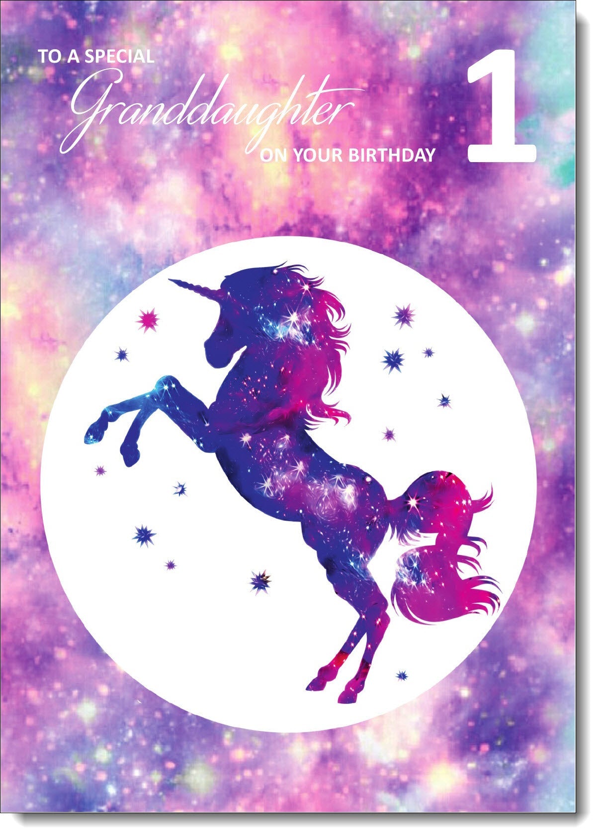 Granddaughter 1st Birthday Card Age 1 Stardust Unicorn