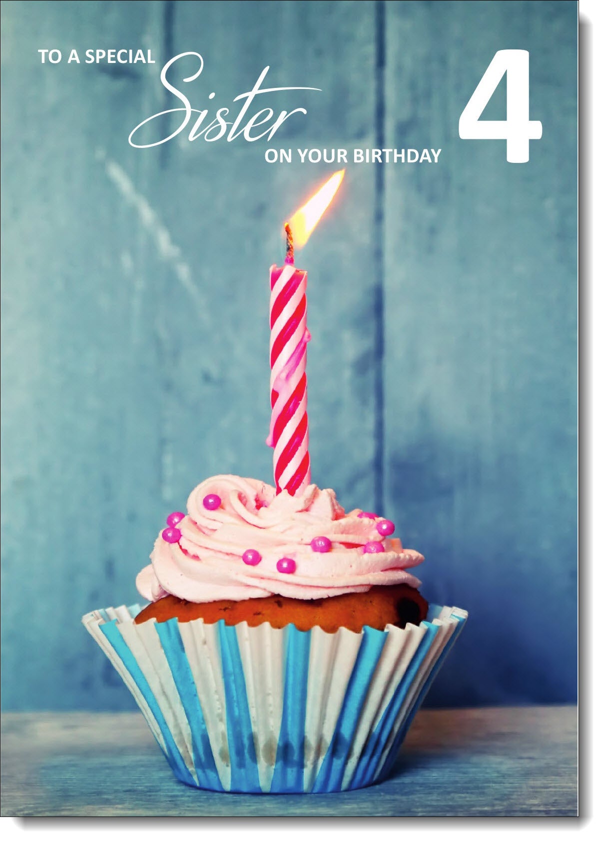 Sister 4th Birthday Card Age 4 Cupcake and Pink Candle