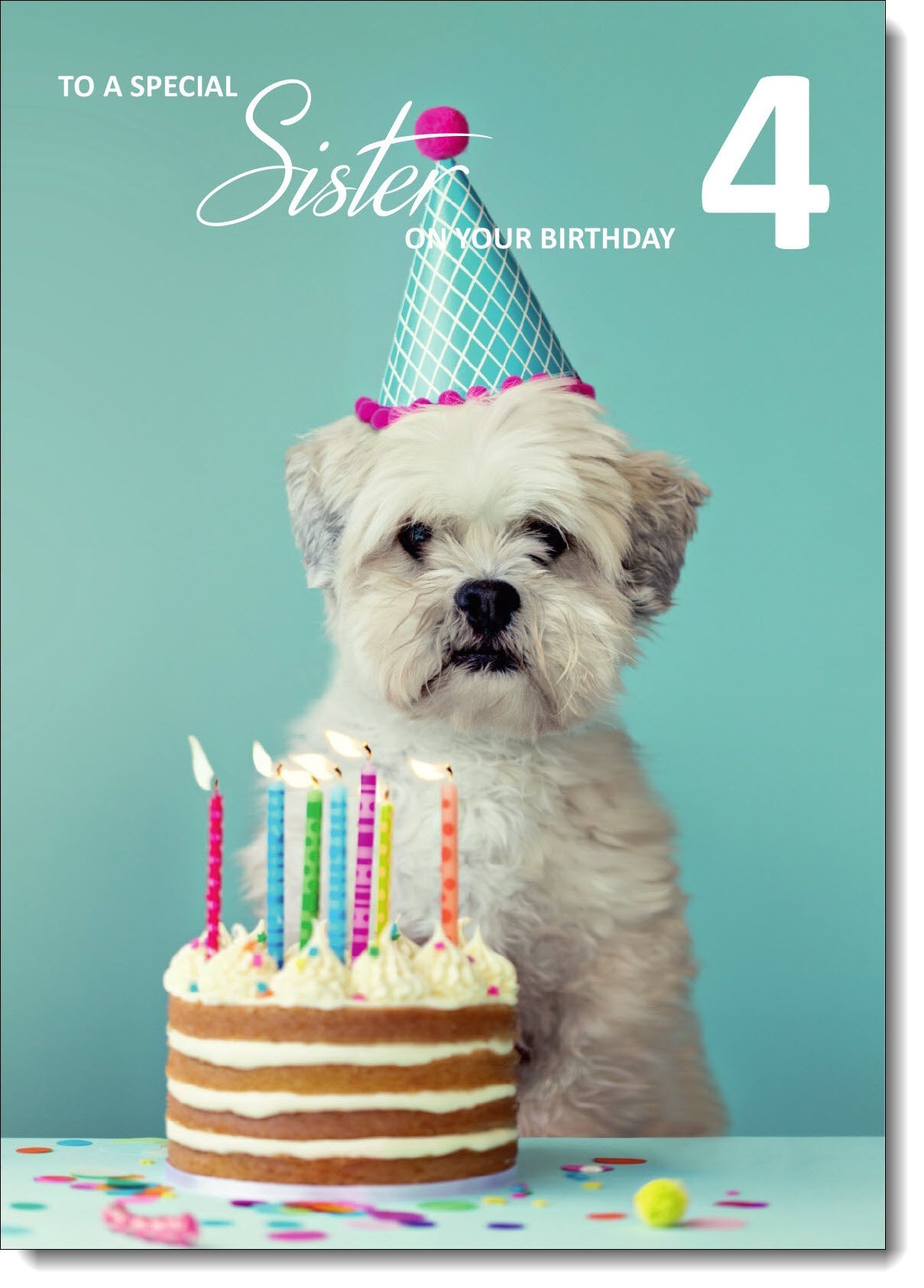 Sister 4th Birthday Card Age 4 Birthday Dog