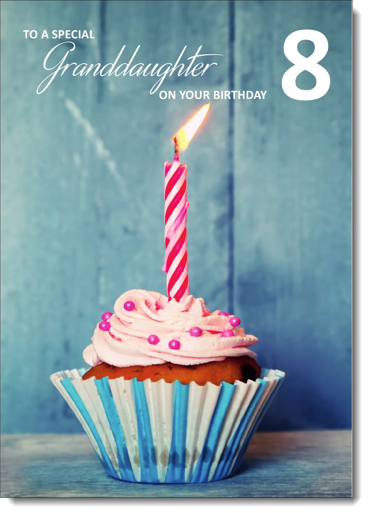Granddaughter 8th Birthday Card Age 8 Cupcake and Pink Candle