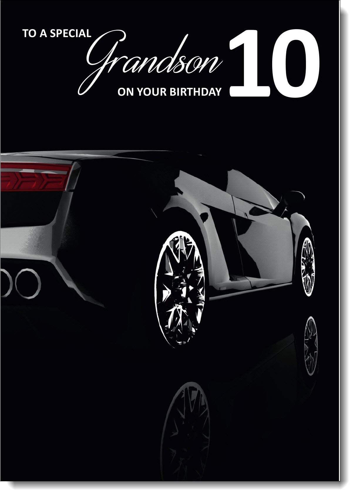 Grandson 10th Birthday Card Age 10 Black Lamborghini