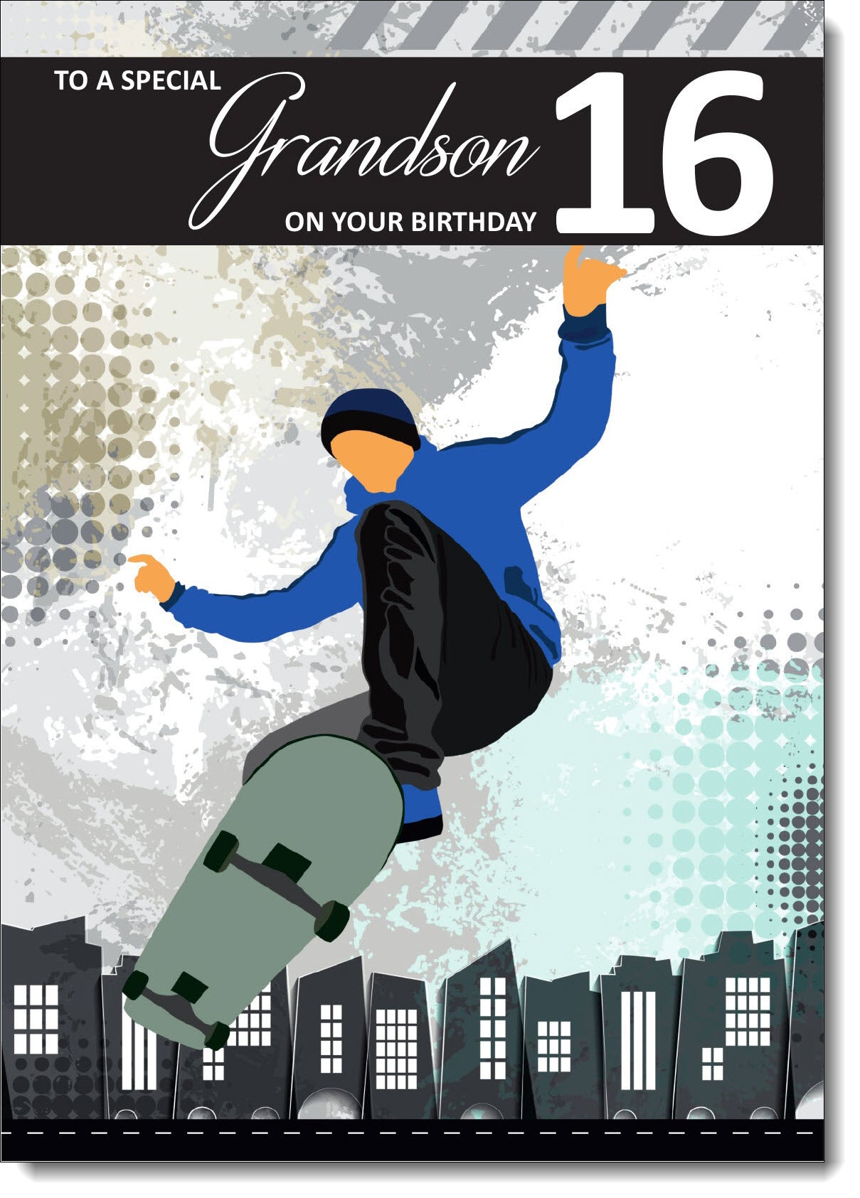 Grandson 16th Birthday Card Age 16 Skateboarding