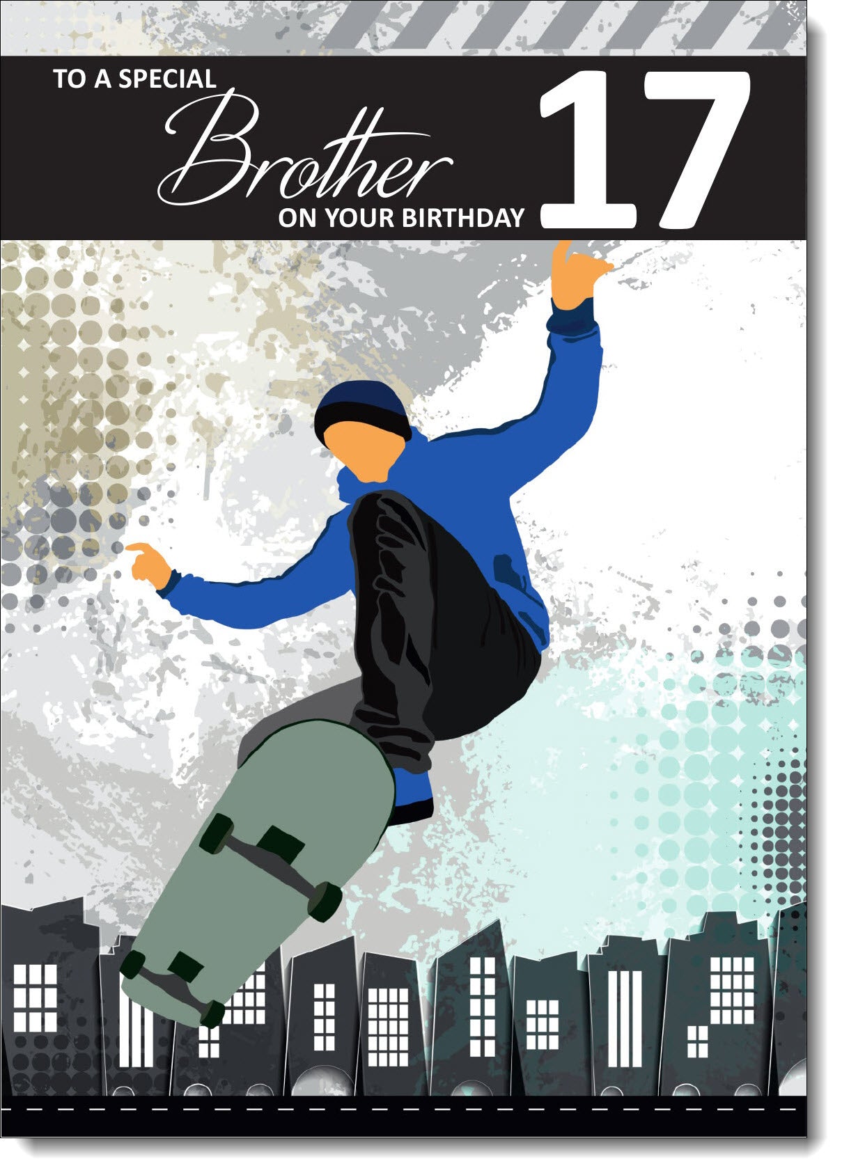 Brother 17th Birthday Card Age 17 Skateboarding