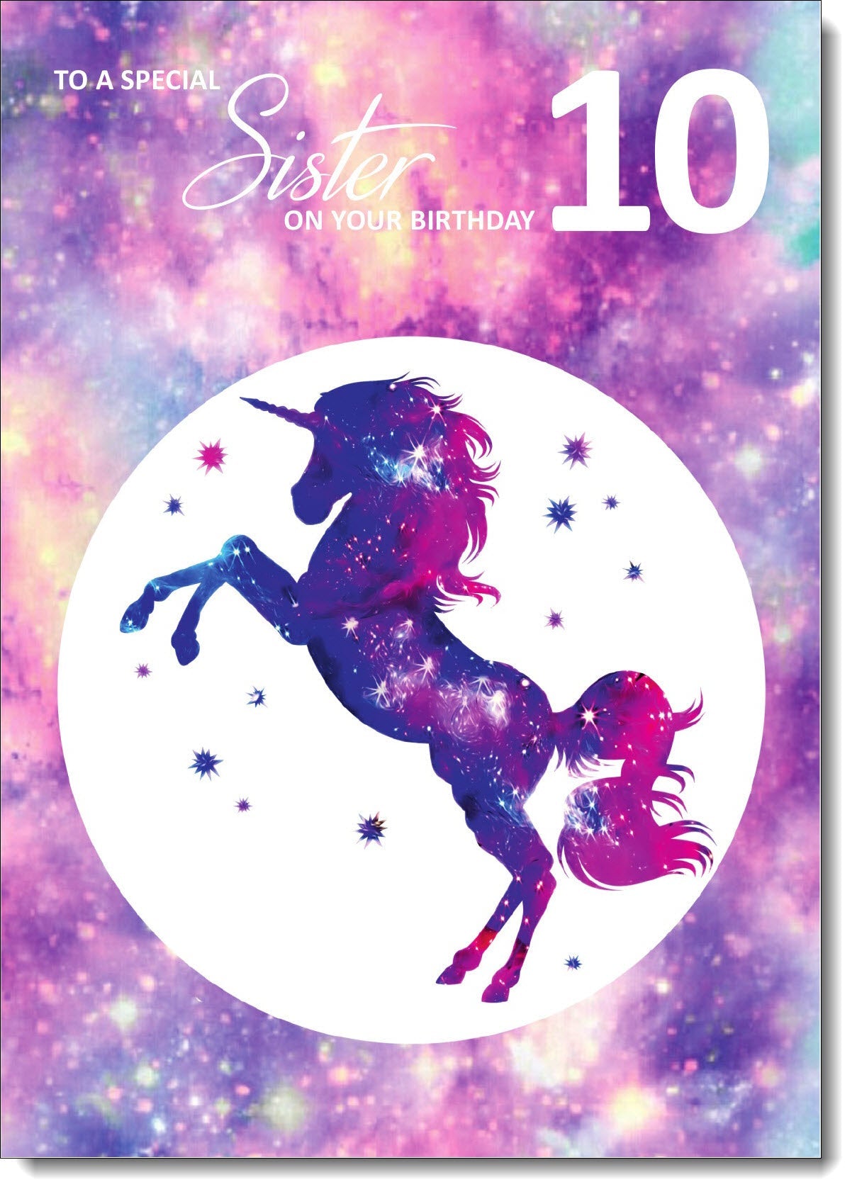 Sister 10th Birthday Card Age 10 Stardust Unicorn
