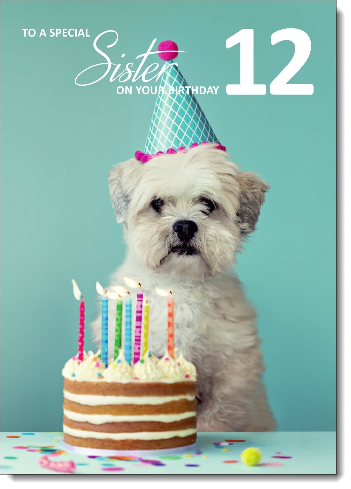 Sister 12th Birthday Card Age 12 Birthday Dog