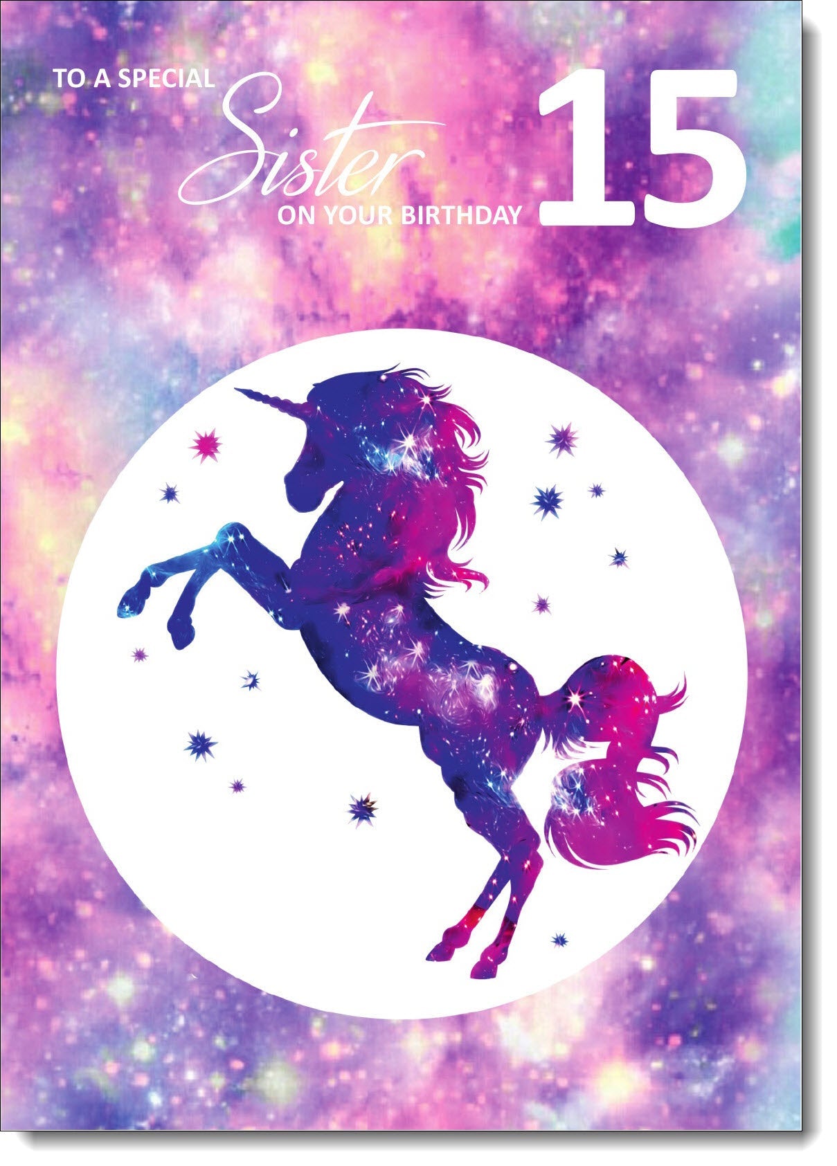 Sister 15th Birthday Card Age 15 Stardust Unicorn