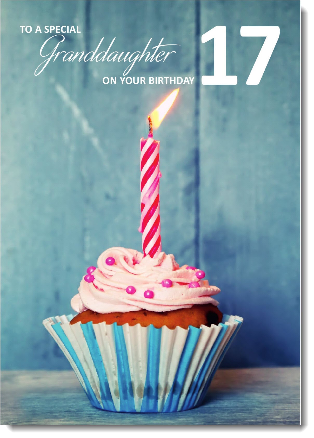 Granddaughter 17th Birthday Card Age 17 Cupcake and Pink Candle