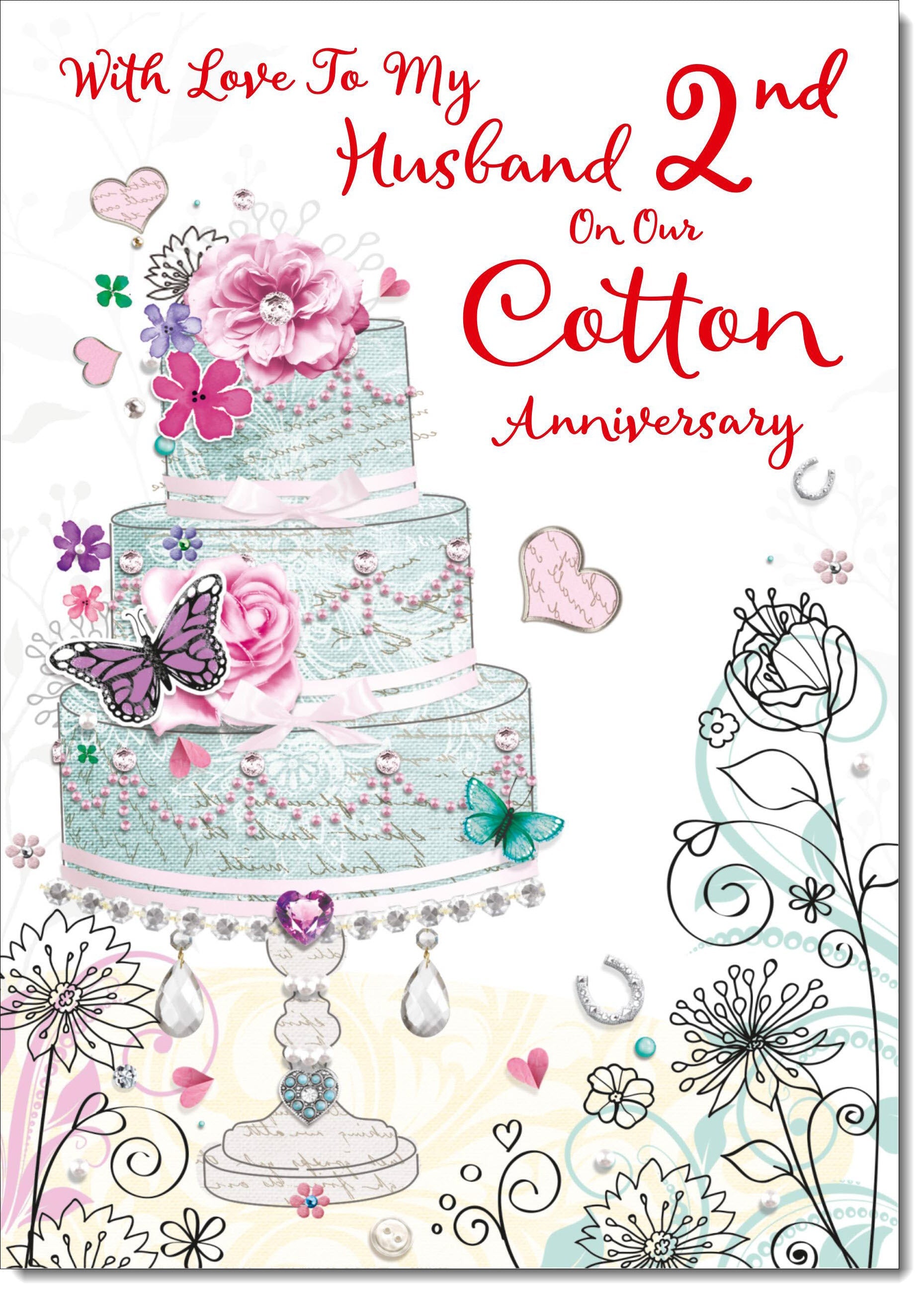 Husband Cotton 2nd Wedding Anniversary Card Wedding Cake