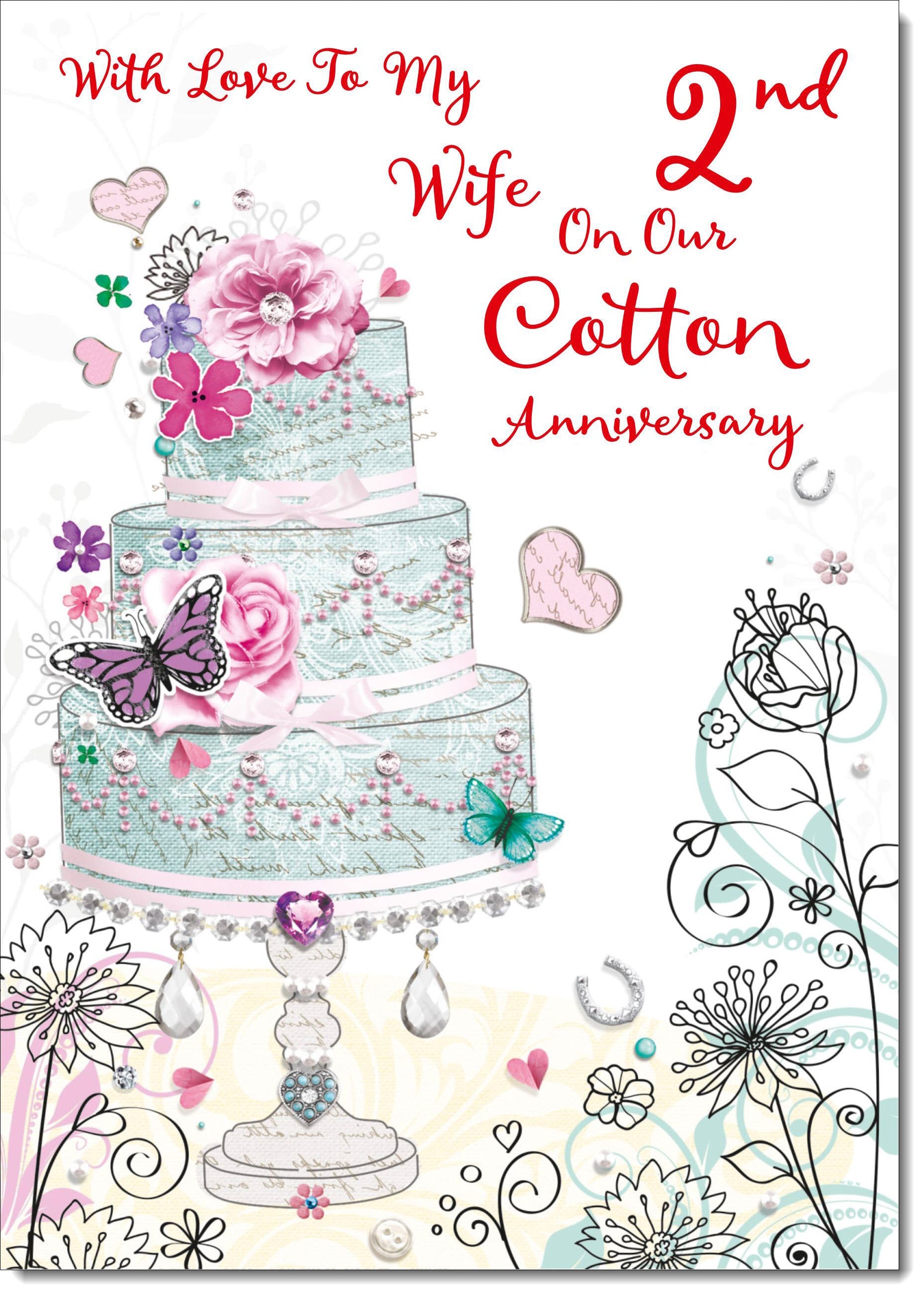 Wife Cotton 2nd Wedding Anniversary Card Wedding Cake