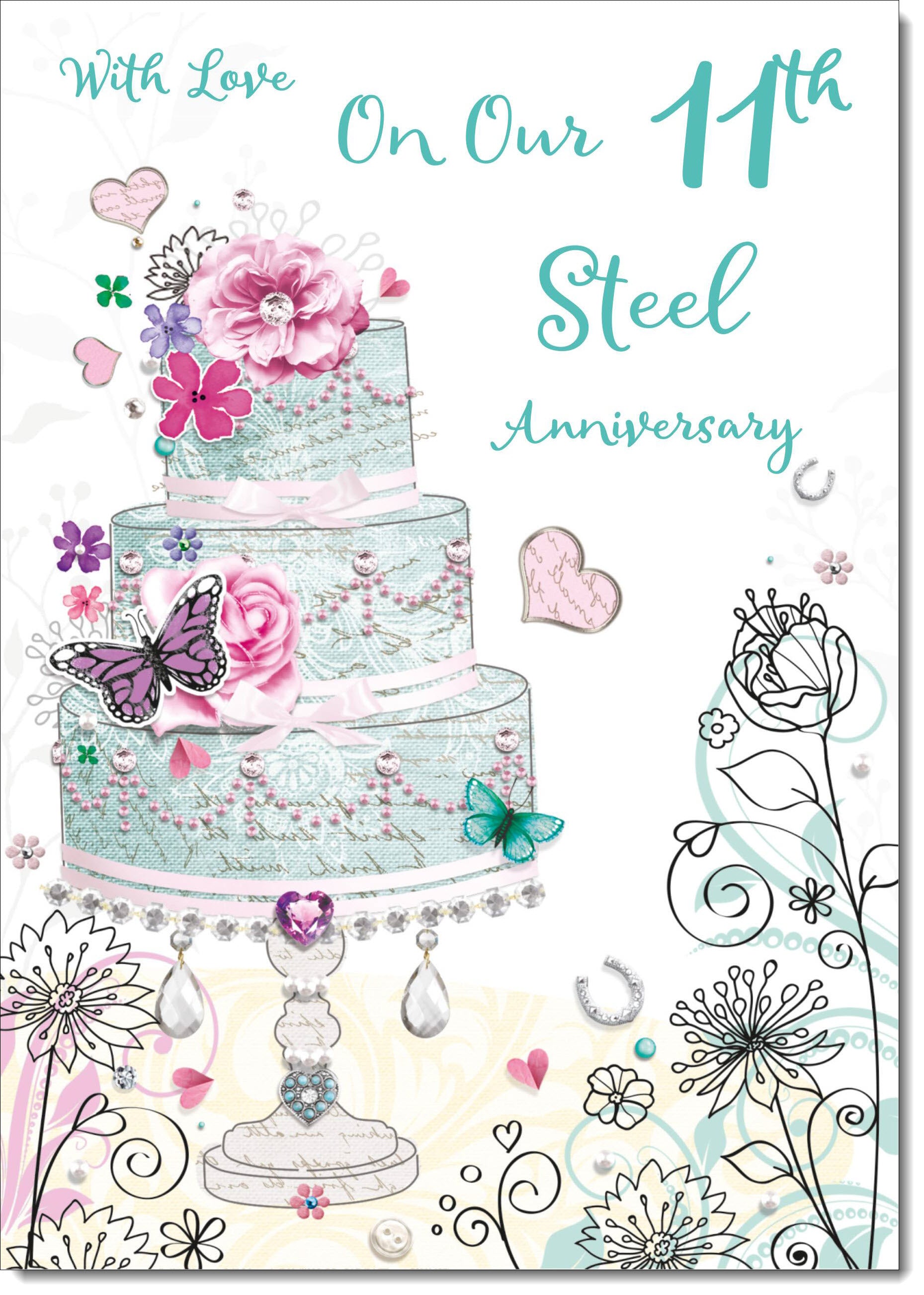 Our Steel 11th Wedding Anniversary Card Wedding Cake