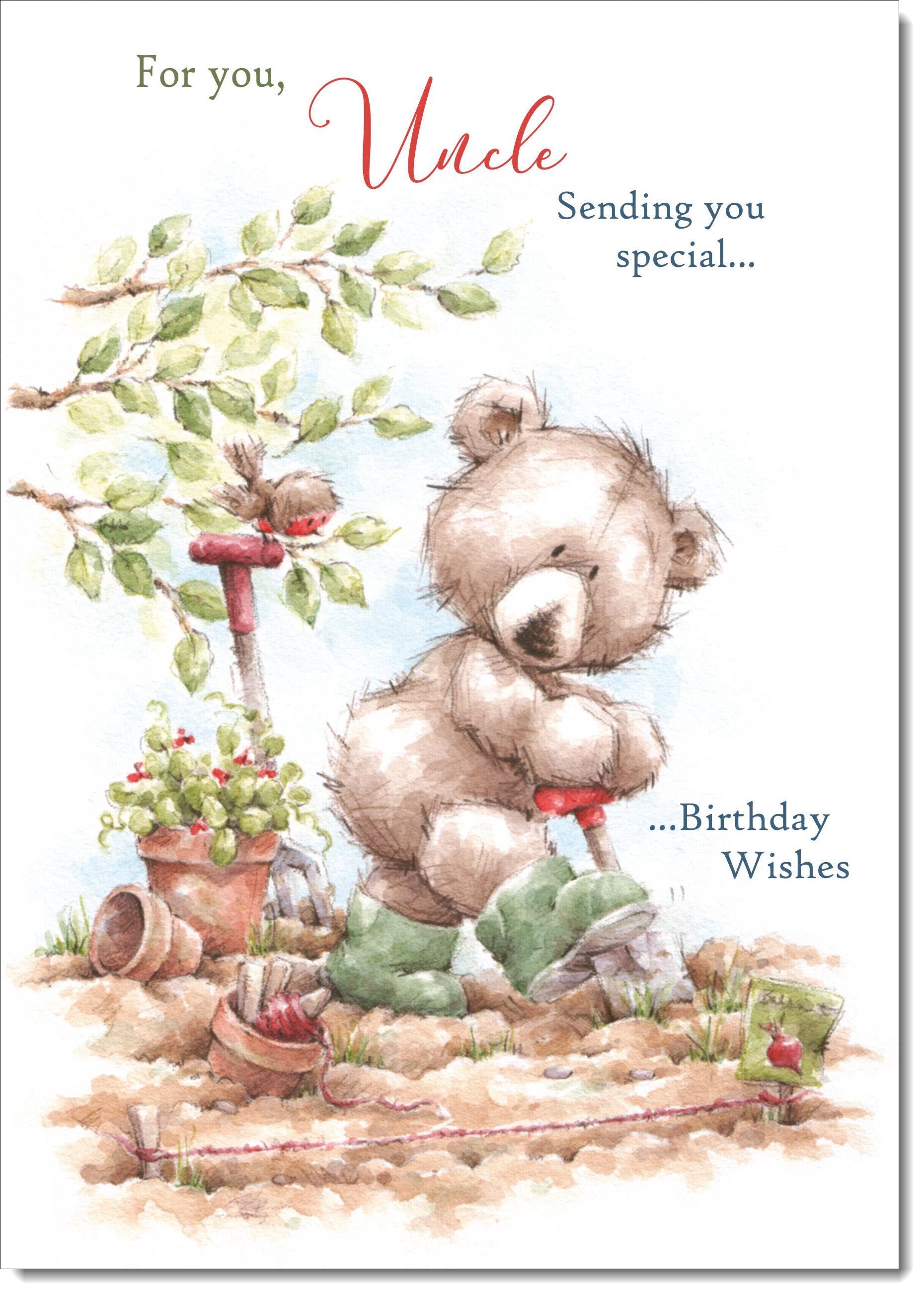Uncle Birthday Card Cute Bear Gardening