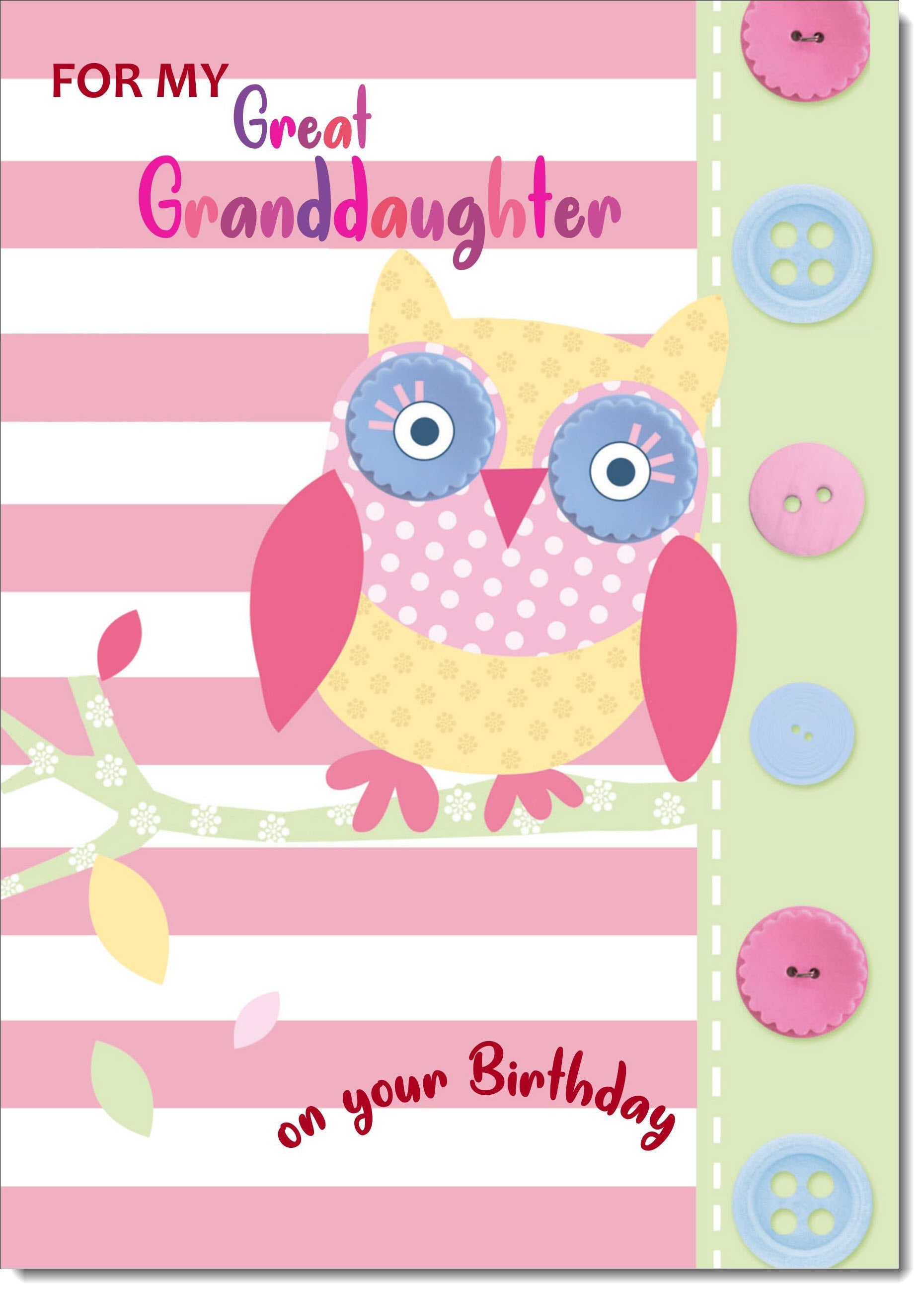 Great Granddaughter Birthday Card Button Owl