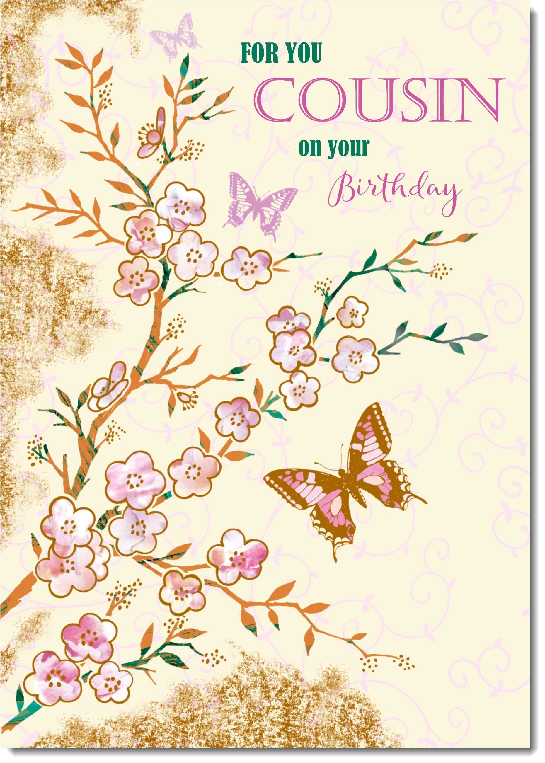 Cousin Birthday Card for Her Pink Blossom and Butterflies