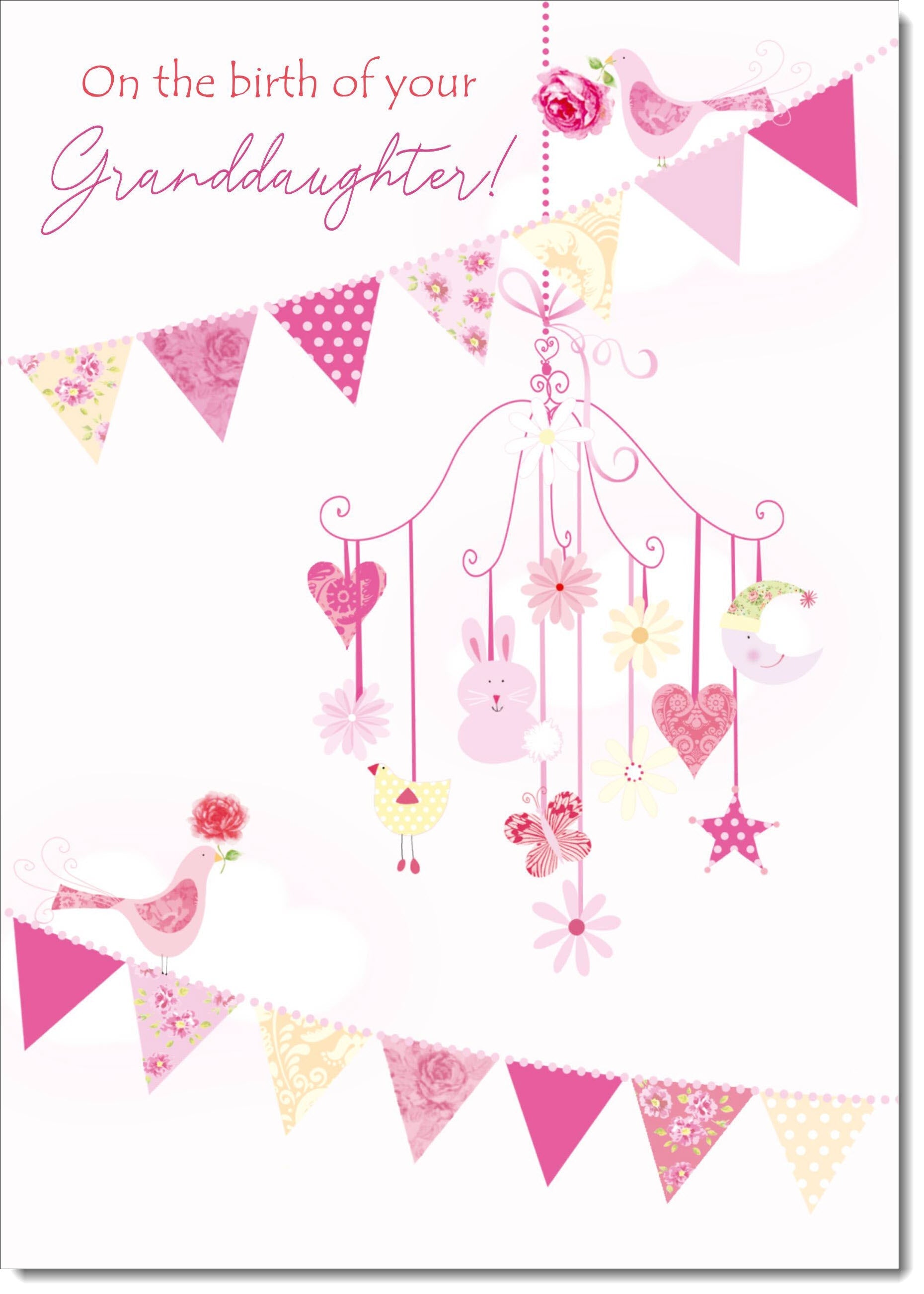 On The Birth Of Your Granddaughter New Baby Girl Congratulations Card Mobile toy