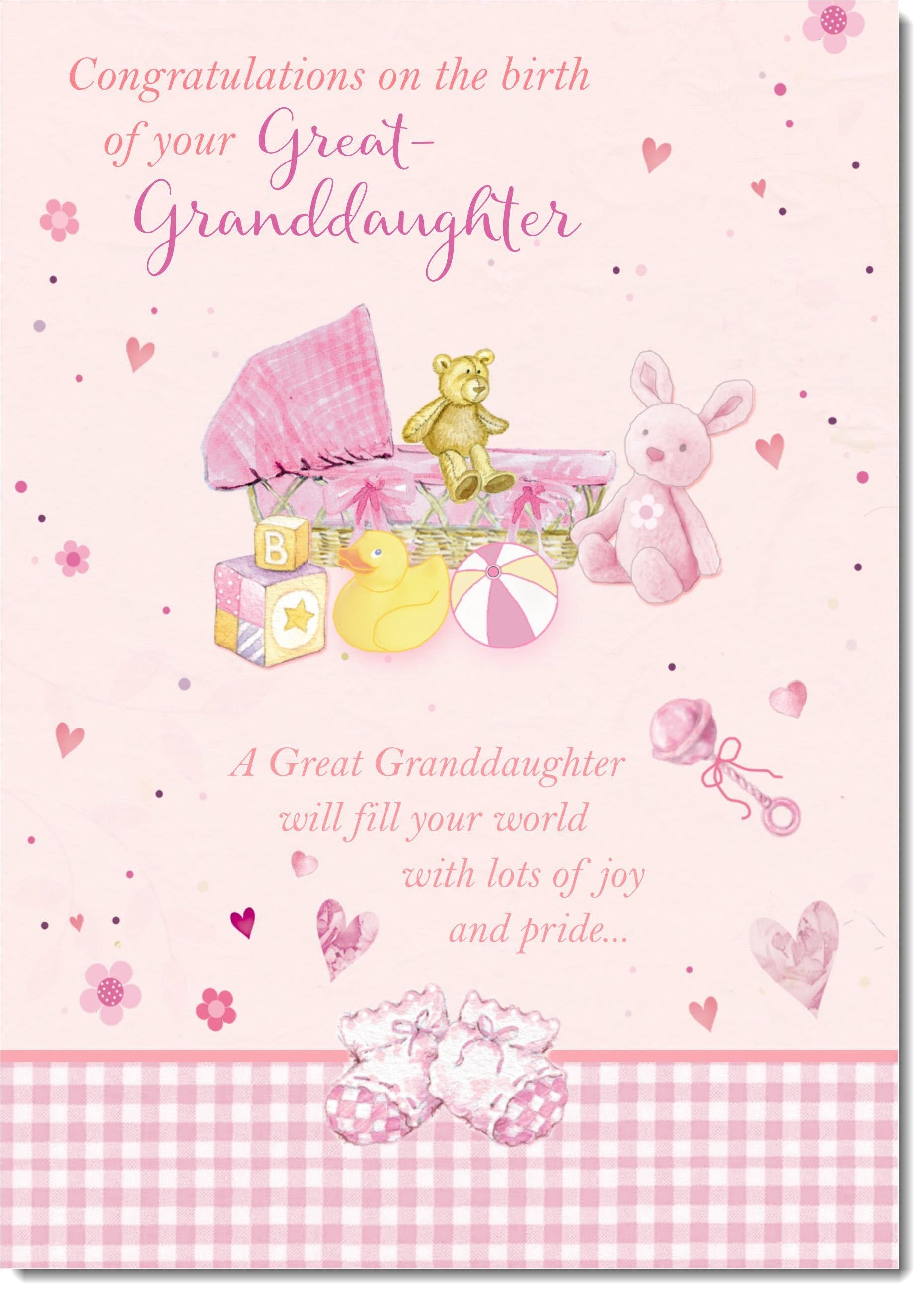 On The Birth Of Your Granddaughter New Baby Girl Congratulations Card Crib