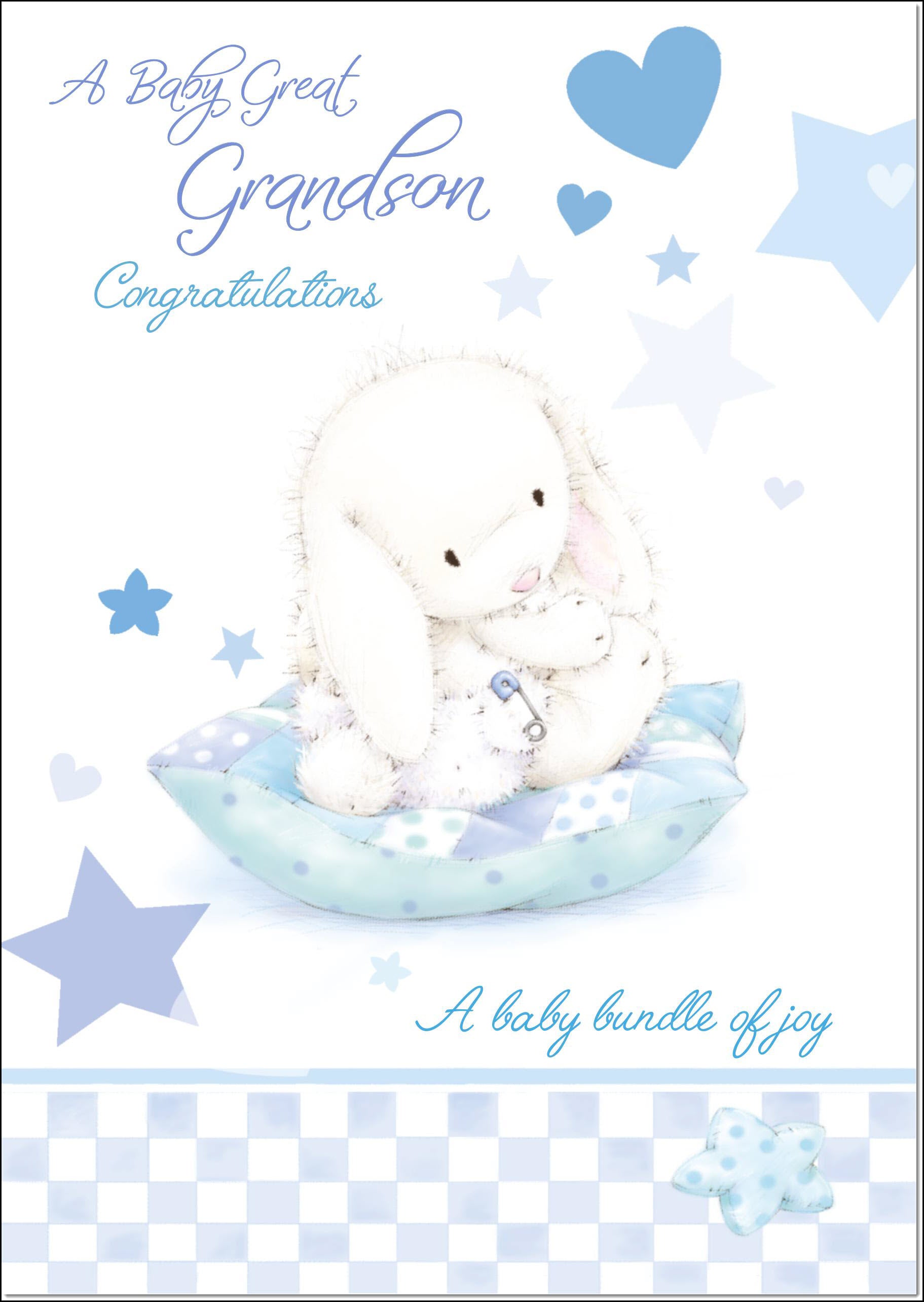 On The Birth Of Your Great Grandson New Baby Boy Congratulations Card Cute Rabbit