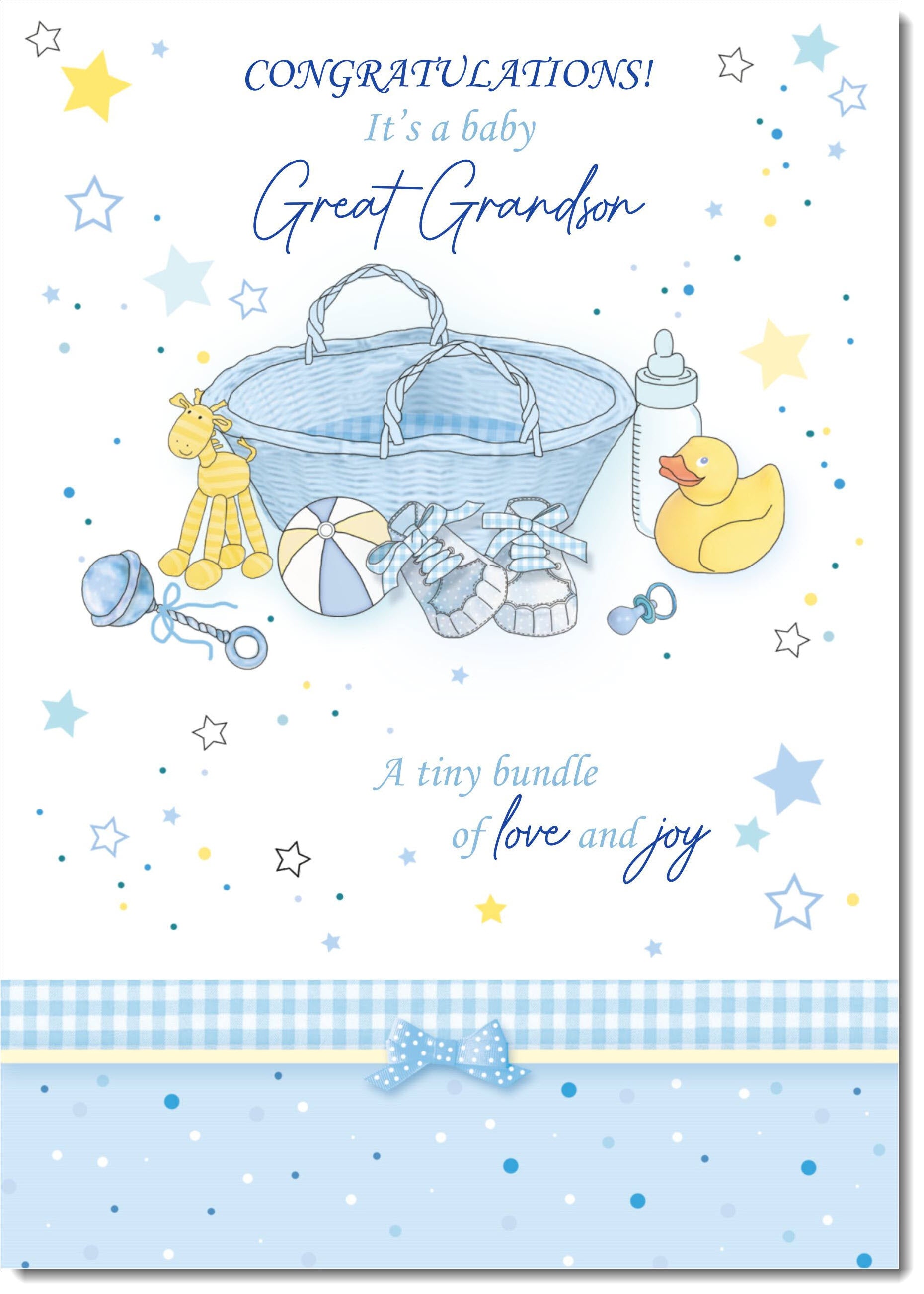 On The Birth Of Your Great Grandson New Baby Boy Congratulations Card Moses Basket