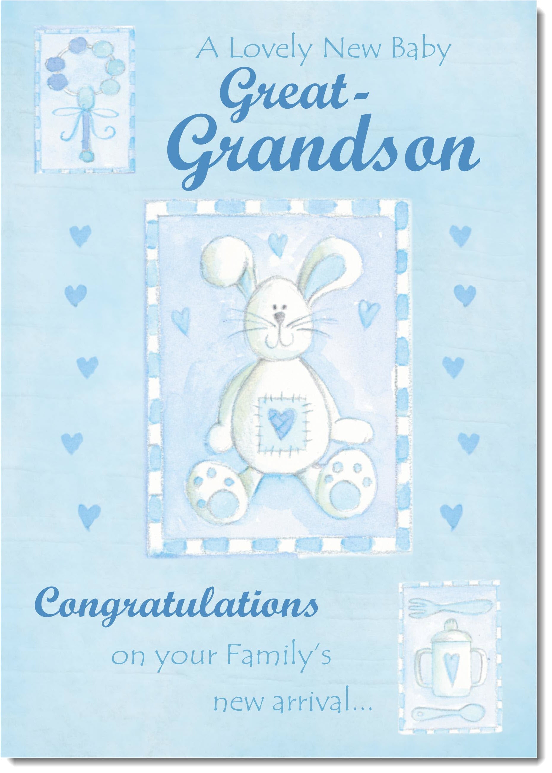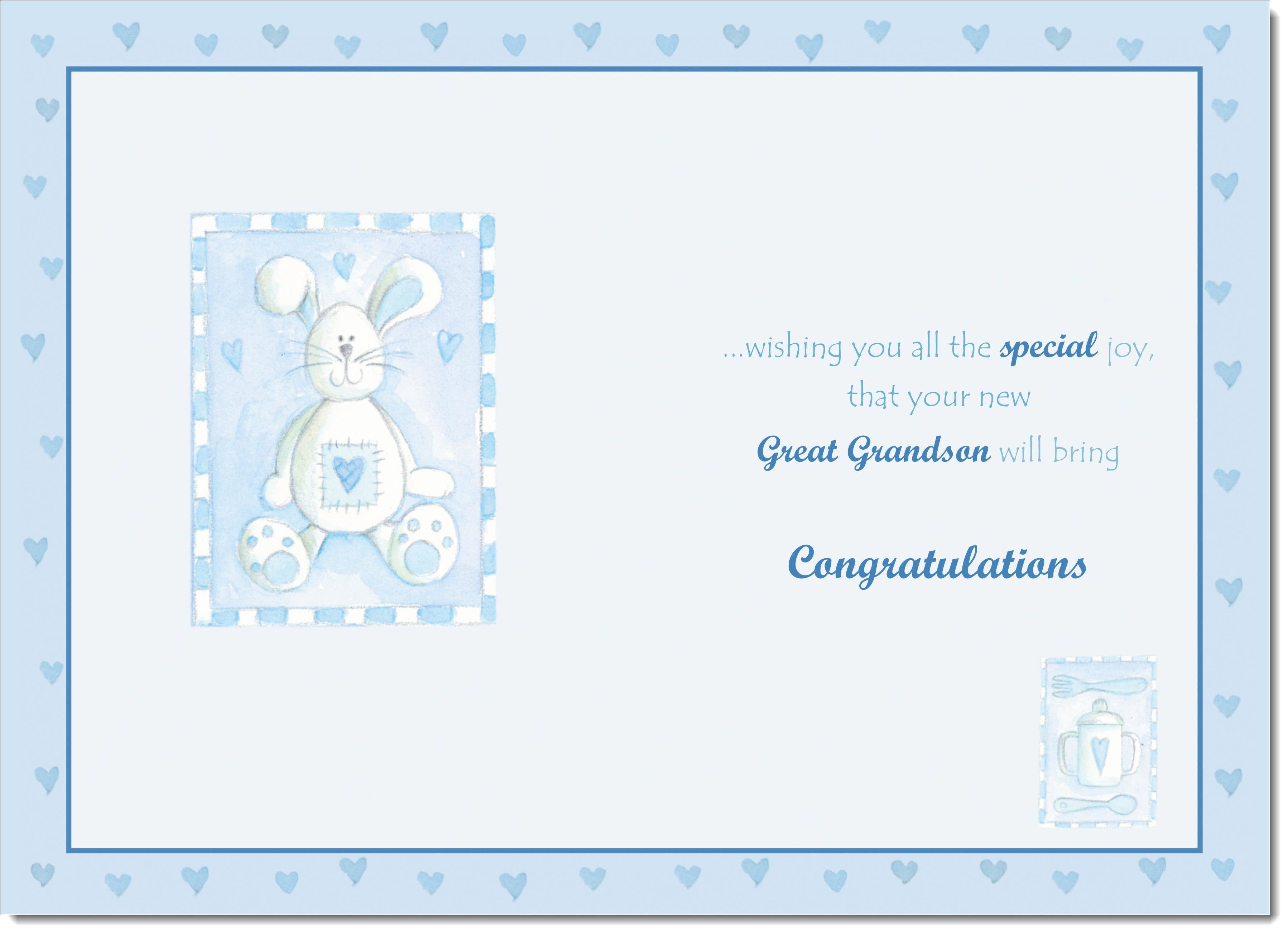 On The Birth Of Your Great Grandson New Baby Boy Congratulations Card Toy Rabbit