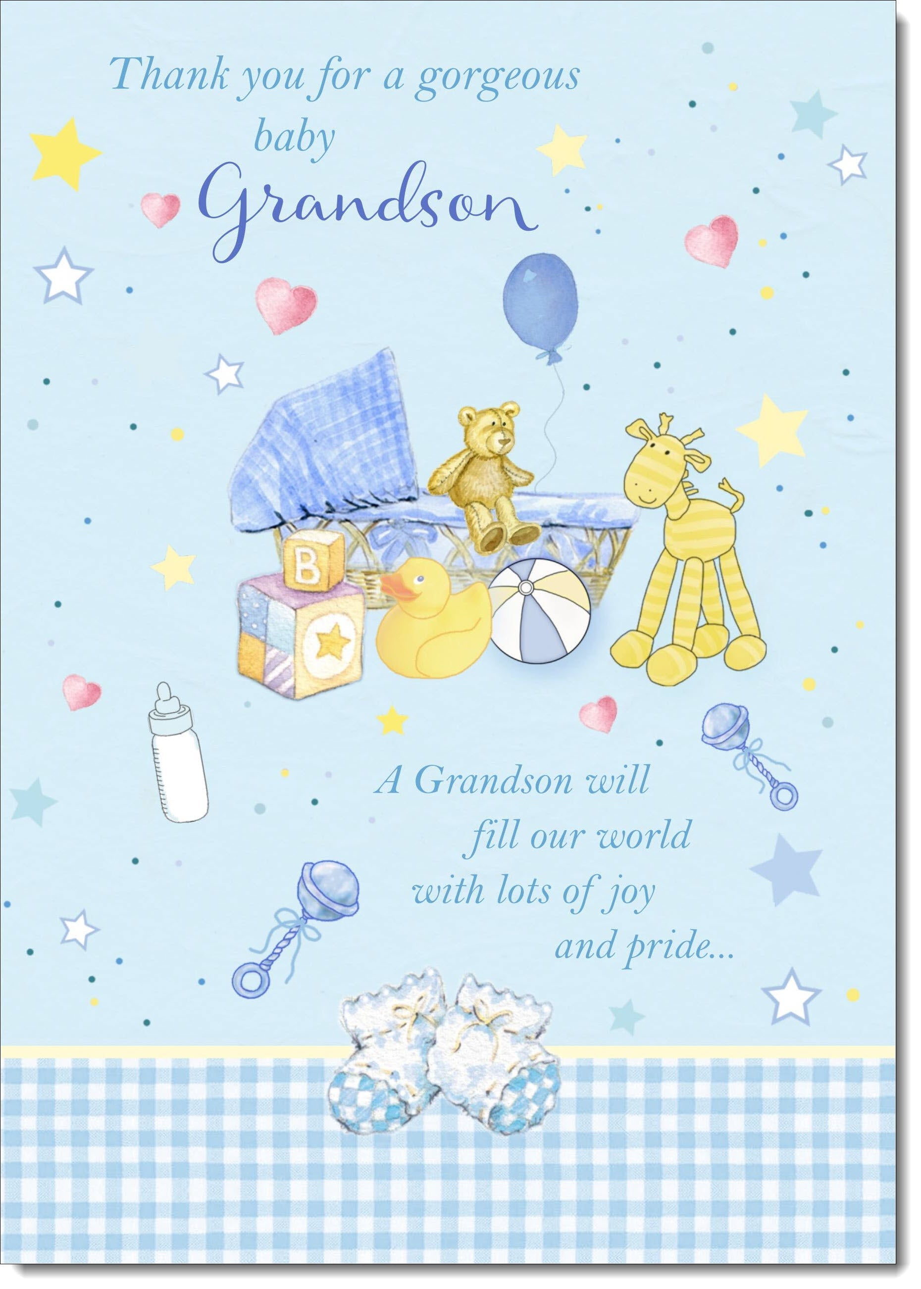 On The Birth Of Our Grandson New Baby Boy Congratulations Card Crib