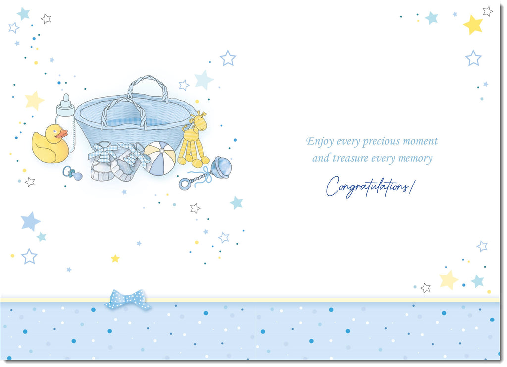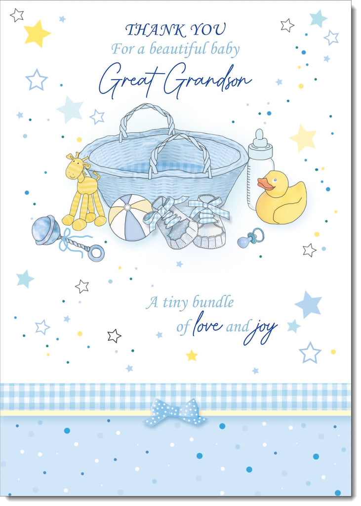On The Birth Of Our Great Grandson New Baby Boy Congratulations Card Moses Basket