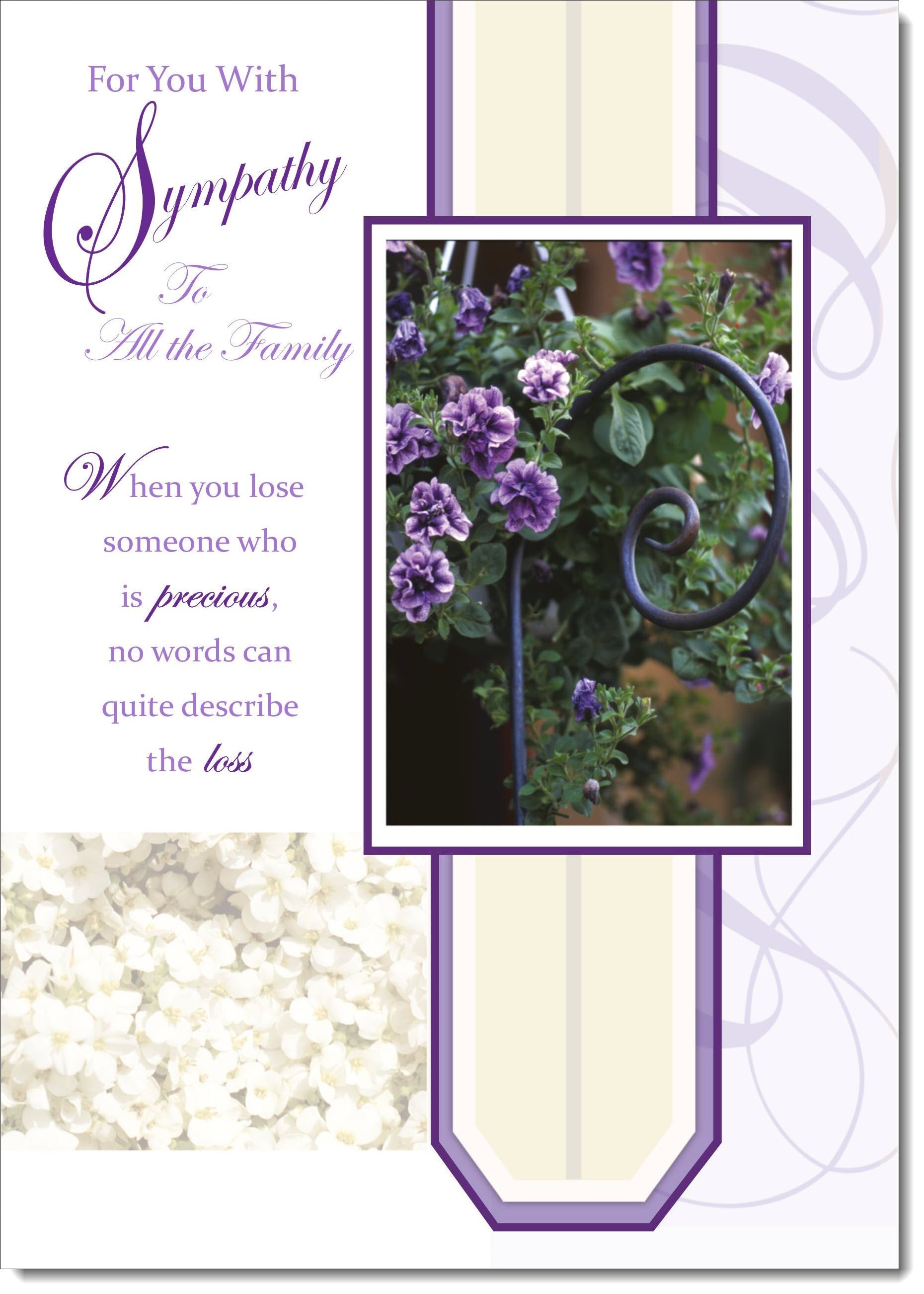 From All The Family Sympathy Condolence Bereavement Card Purple Flowers