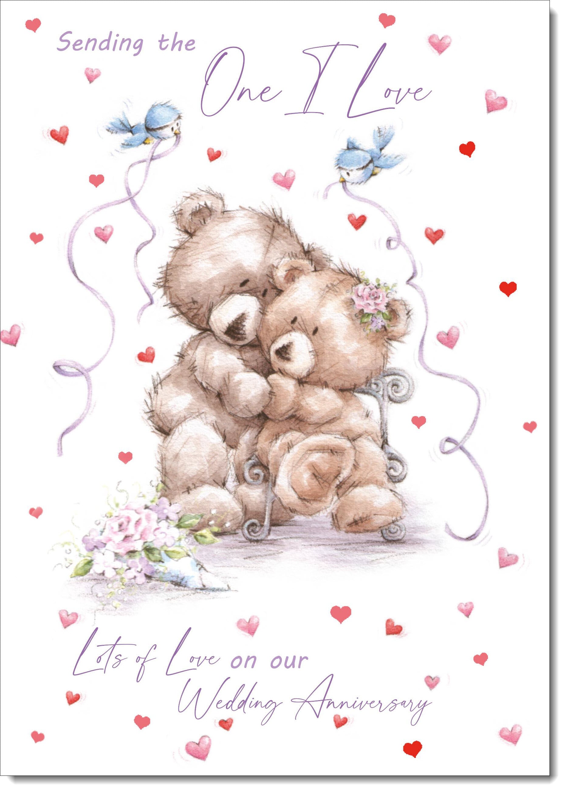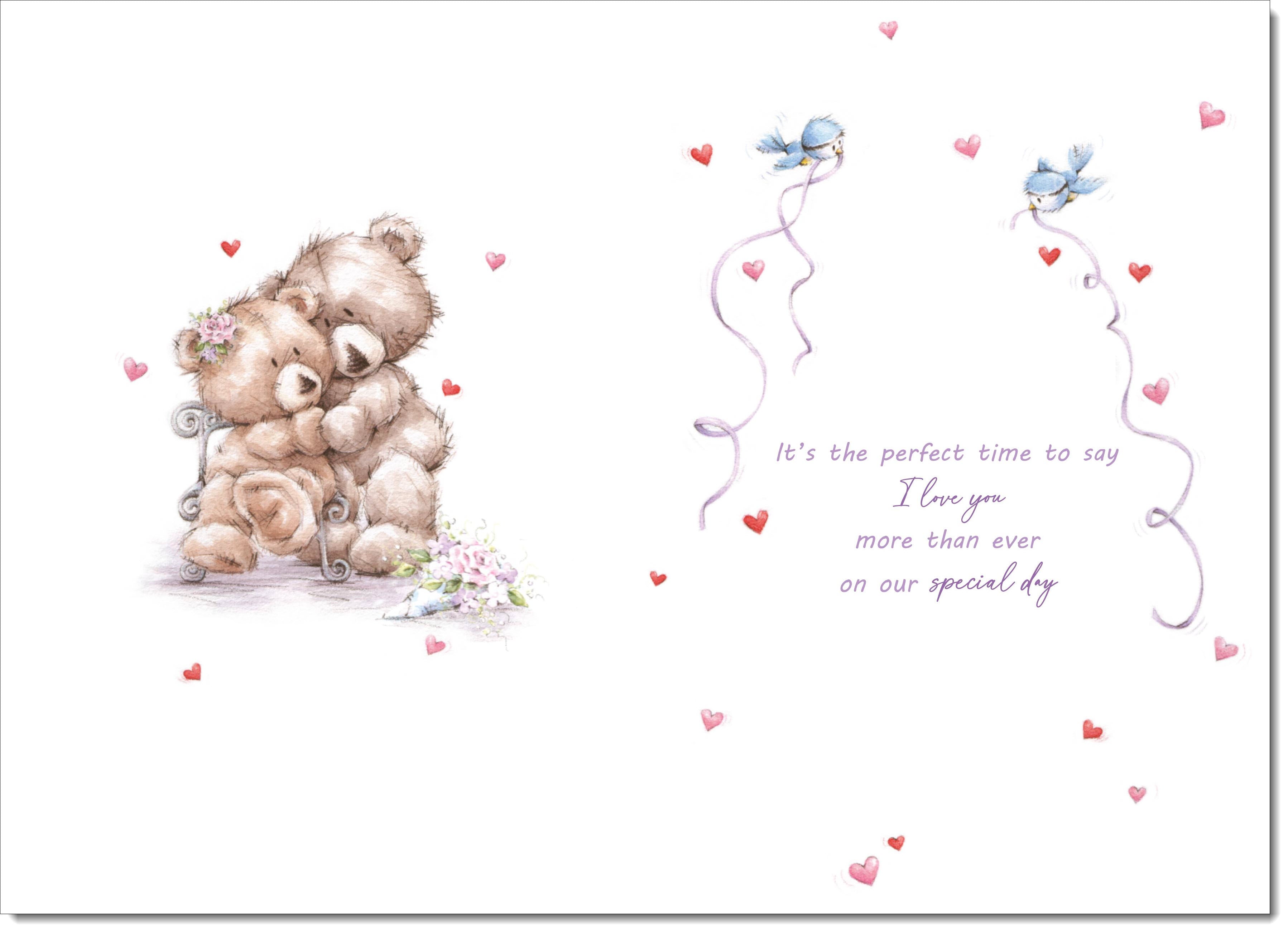 Our Wedding Anniversary Card Cute Teddy Couple with Ribbons