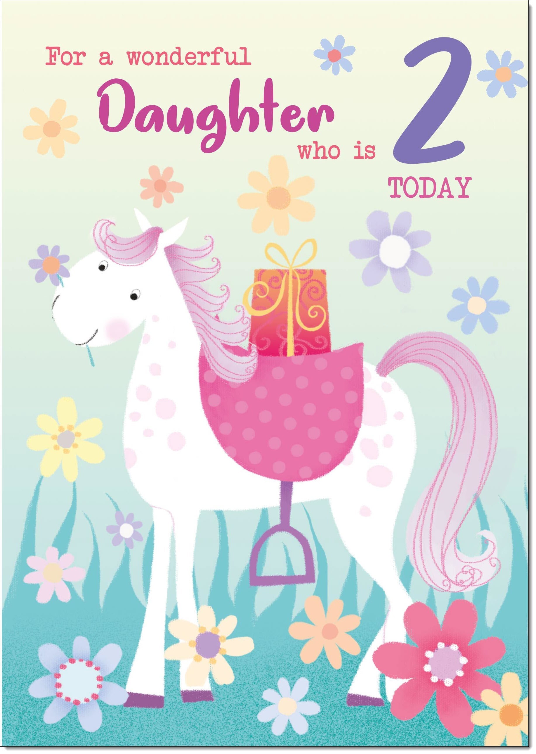 Daughter 2nd Birthday Card Age 2 Colouring Unicorn Horse