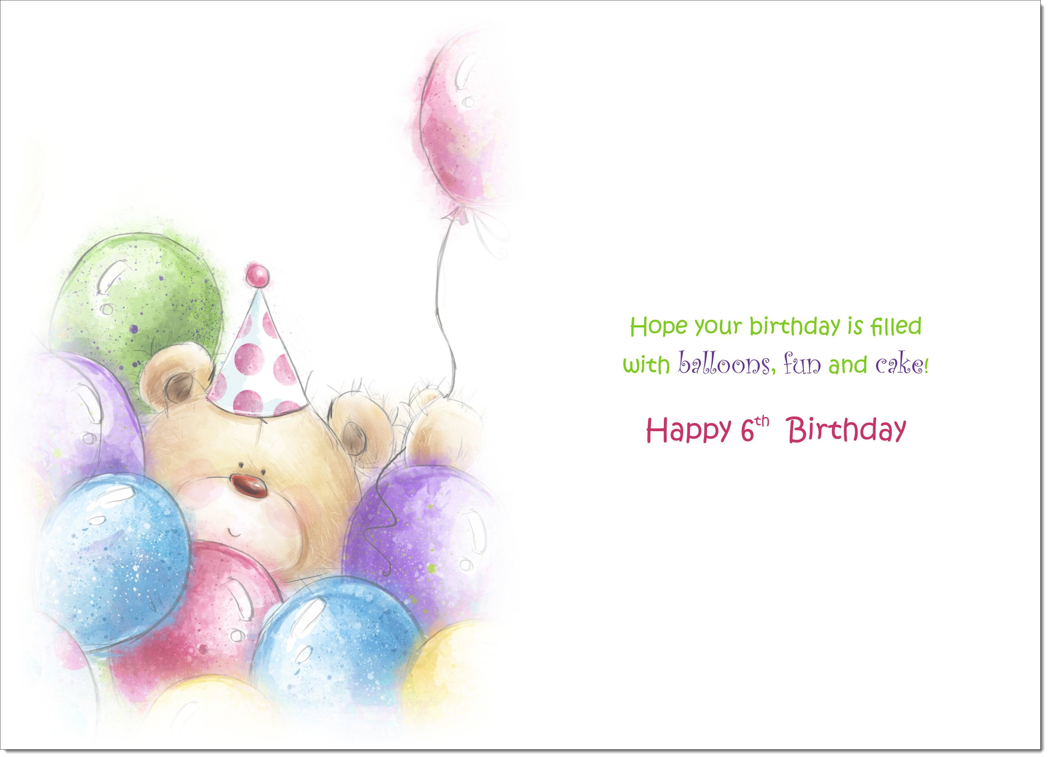 Daughter 6th Birthday Card Age 6 Cute Teddy Bear in Balloons