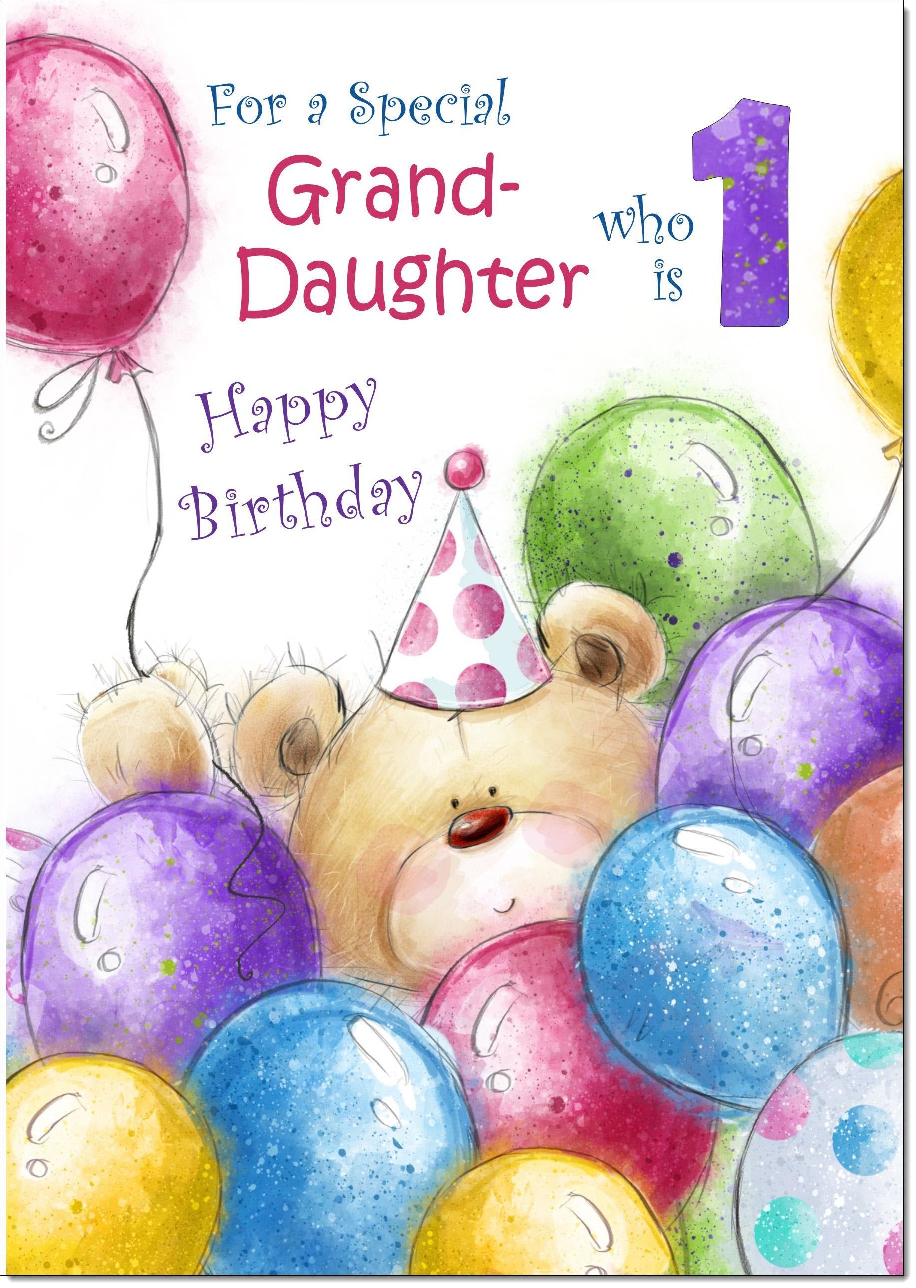 Granddaughter 1st Birthday Card Age 1 Cute Teddy Bear in Balloons