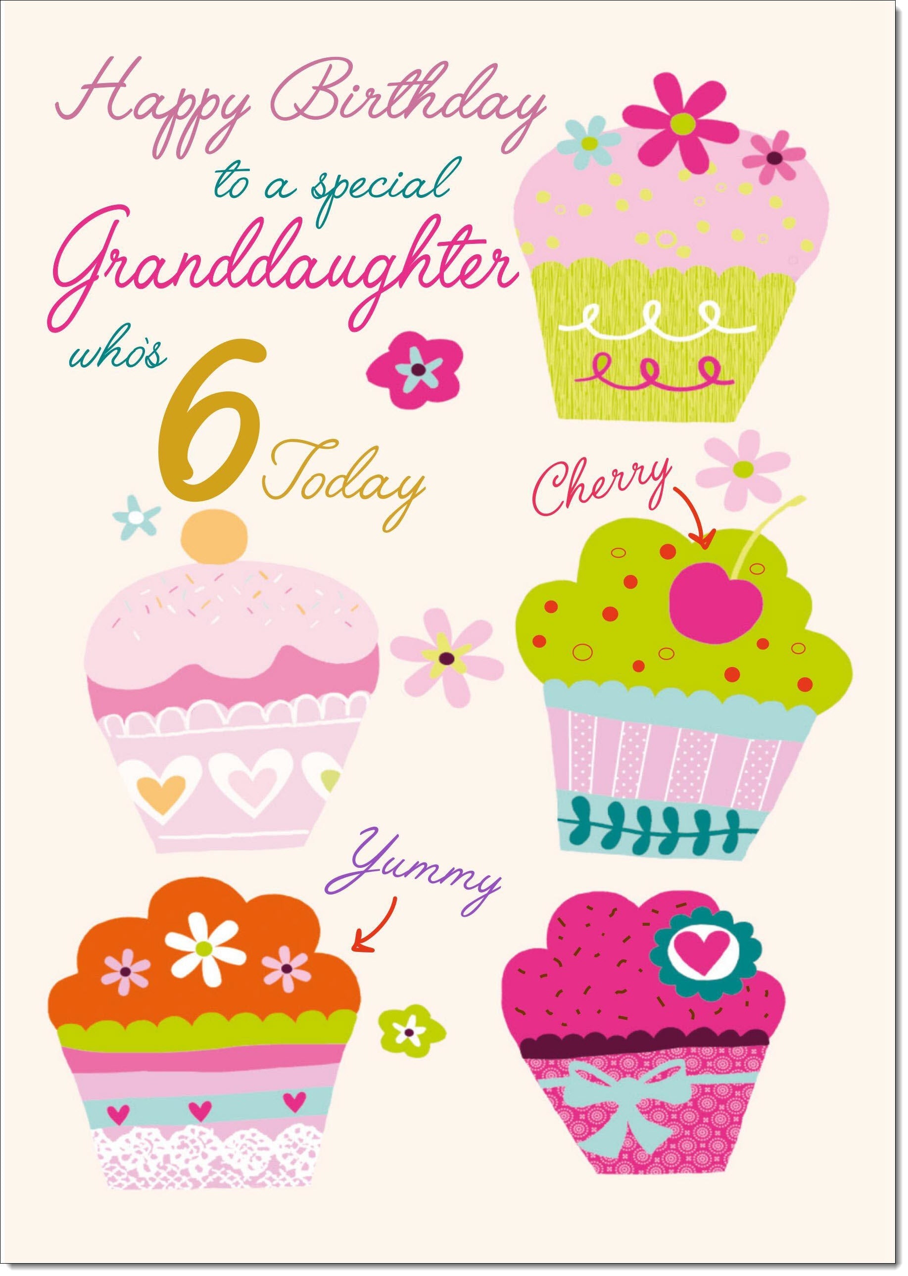 Granddaughter 6th Birthday Card Age 6 Bright Cupcakes