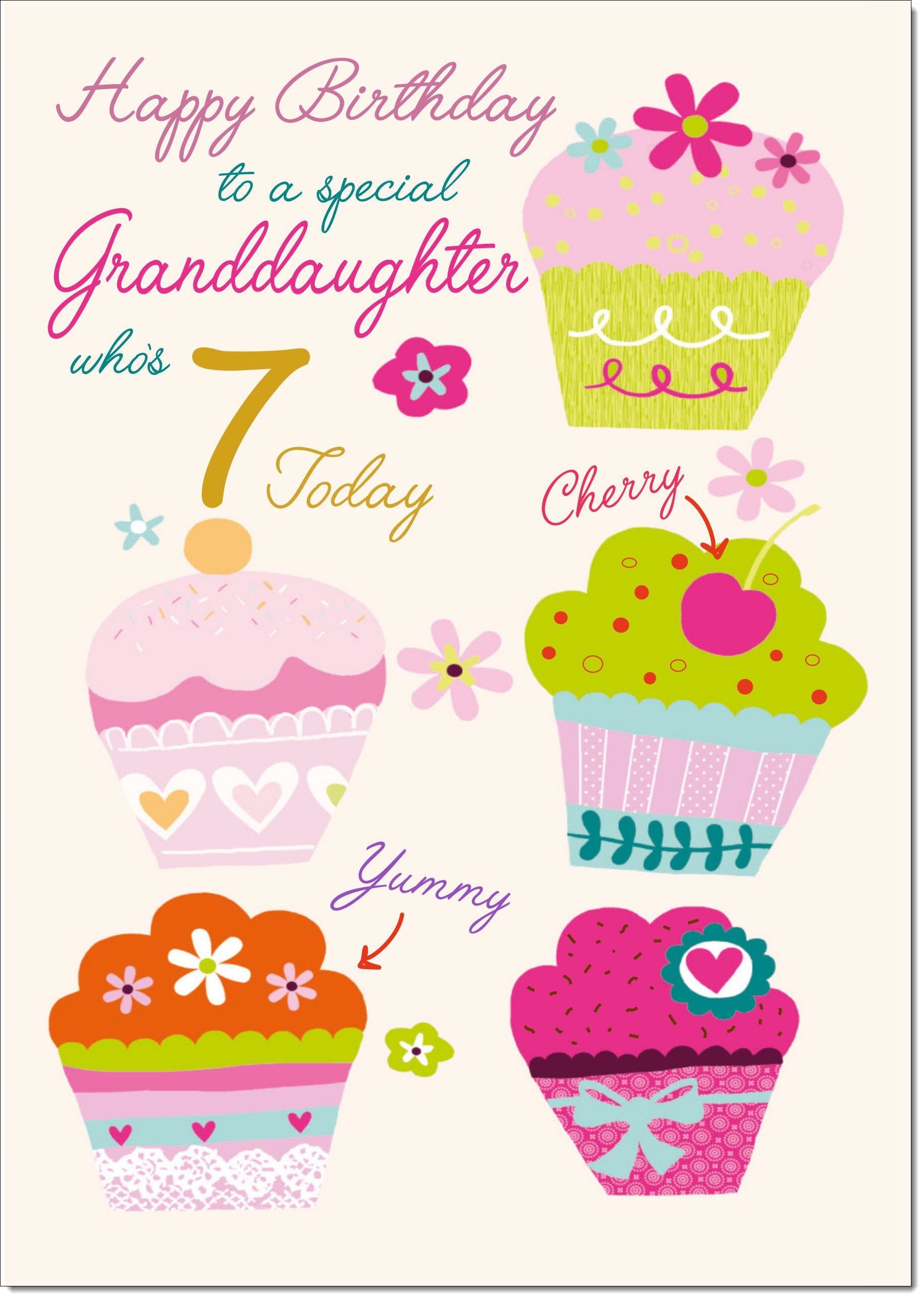 Granddaughter 7th Birthday Card Age 7 Bright Cupcakes