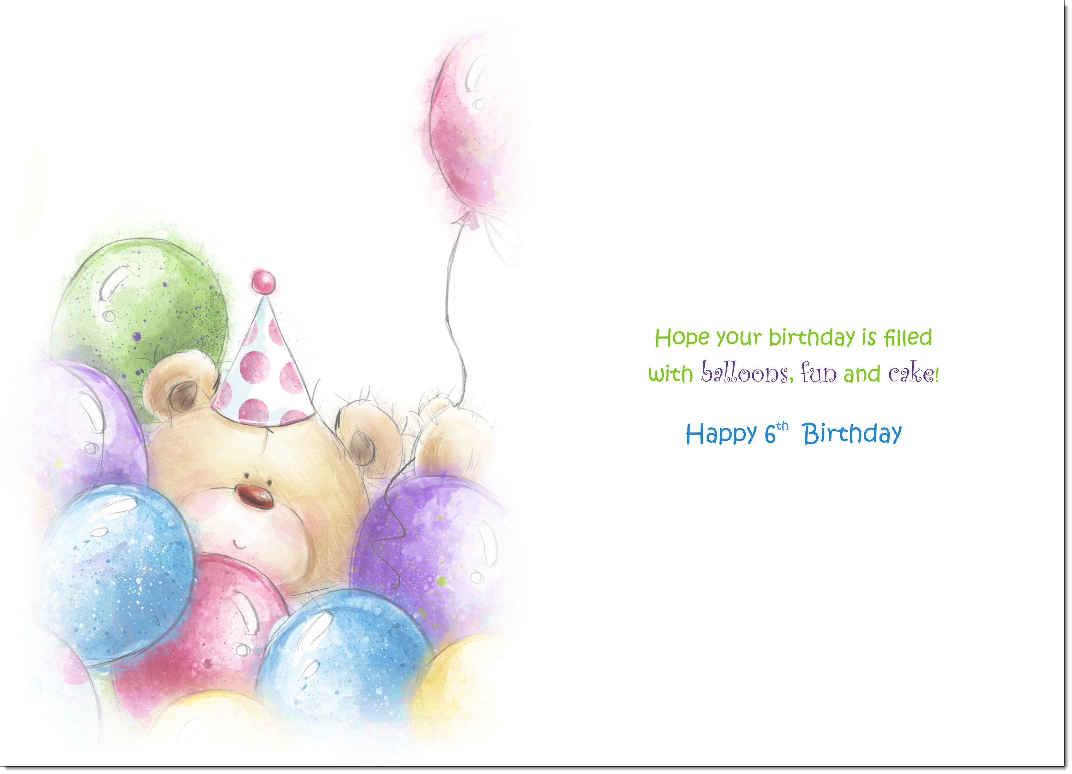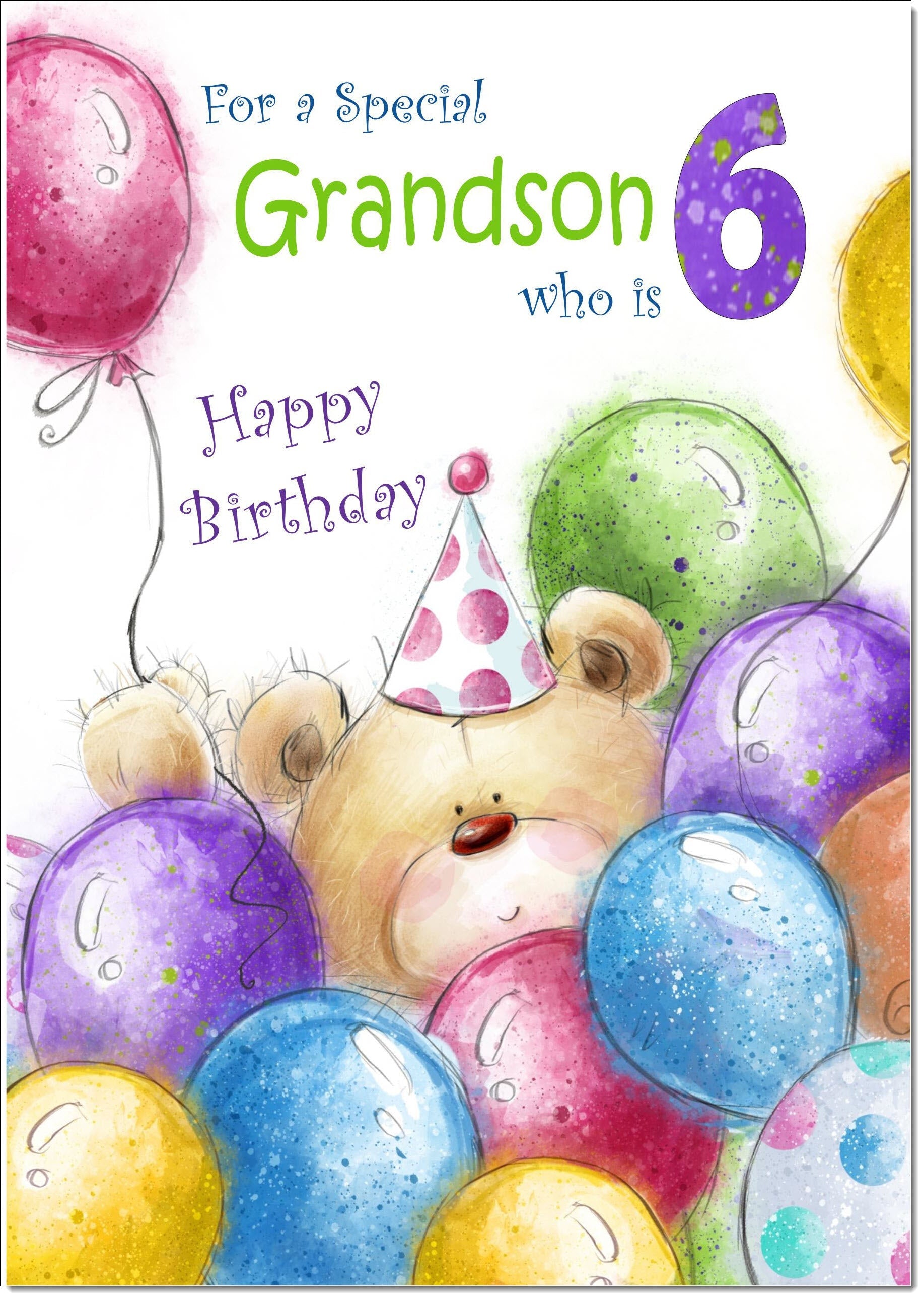 Grandson 6th Birthday Card Age 6 Cute Teddy Bear in Balloons