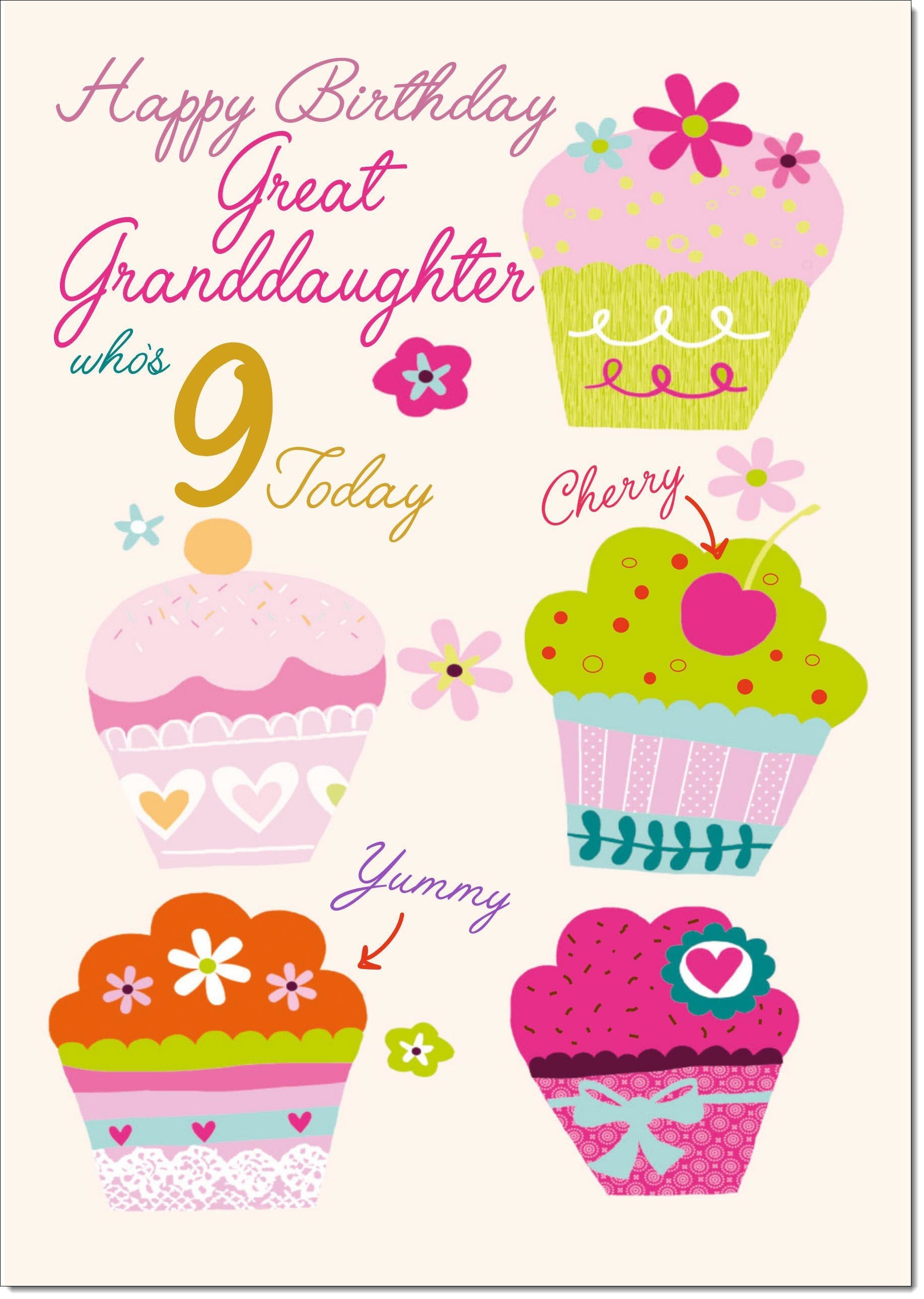 Great Granddaughter 9th Birthday Card Age 9 Bright Cupcakes