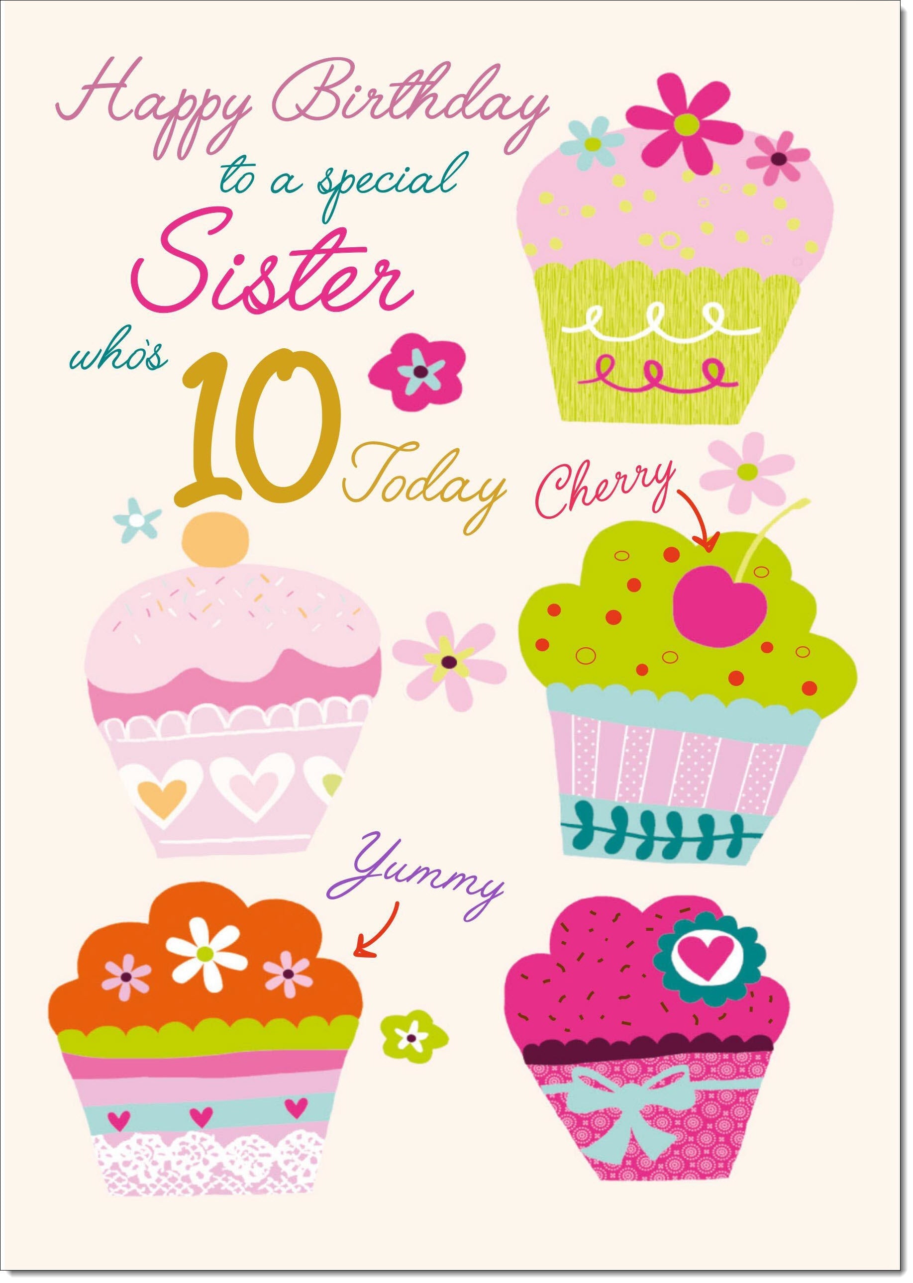 Sister 10th Birthday Card Age 10 Bright Cupcakes