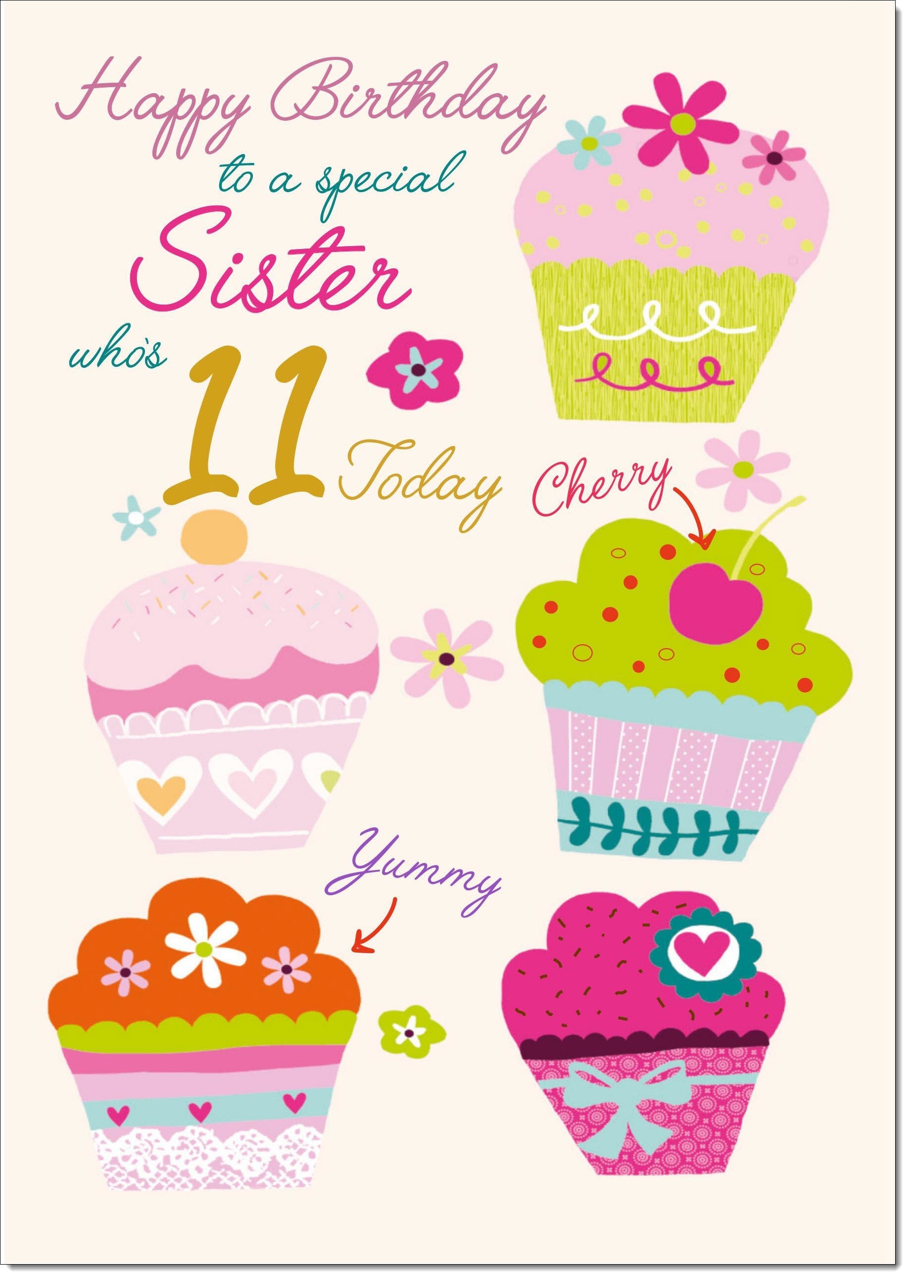 Sister 11th Birthday Card Age 11 Bright Cupcakes