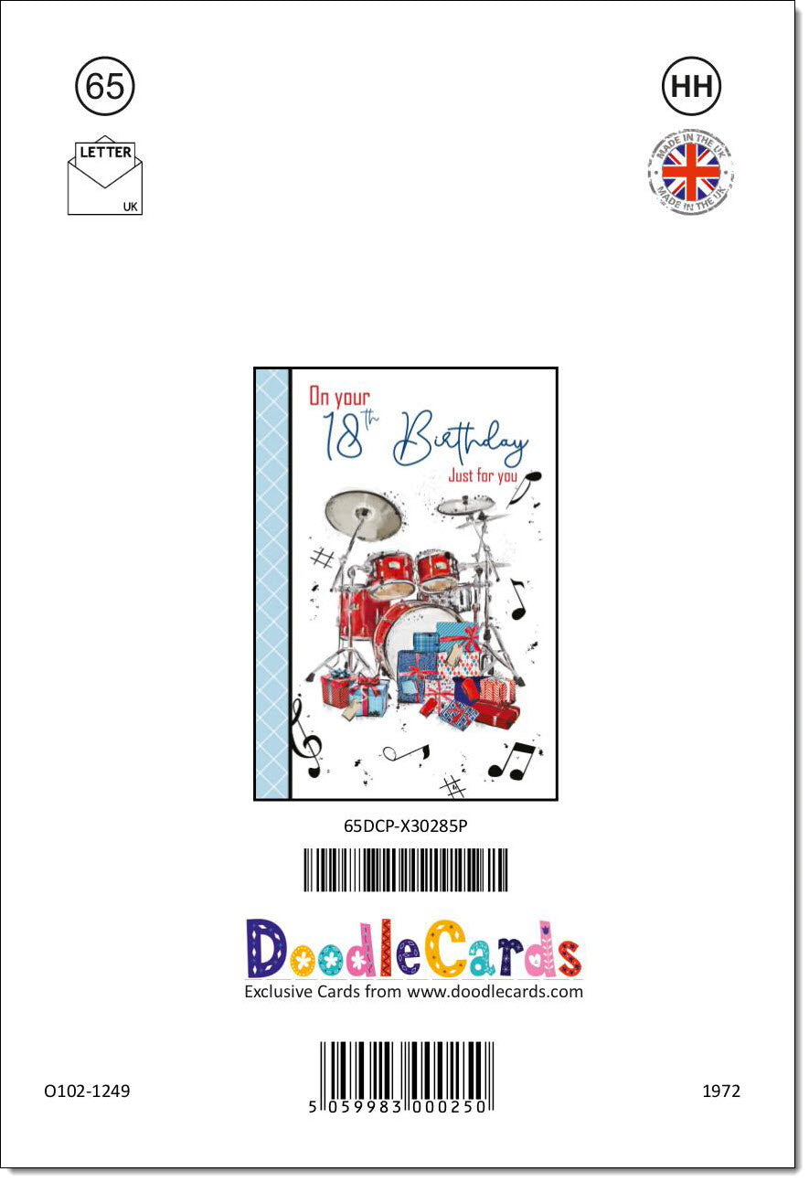 18th Birthday Card Age 18 for Him Drumkit
