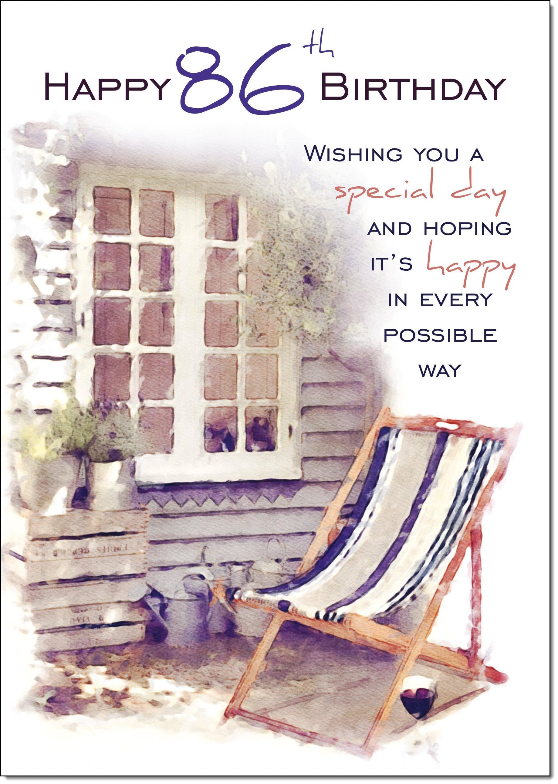 86th Birthday Card Age 86 for Him Relaxing Deck Chair