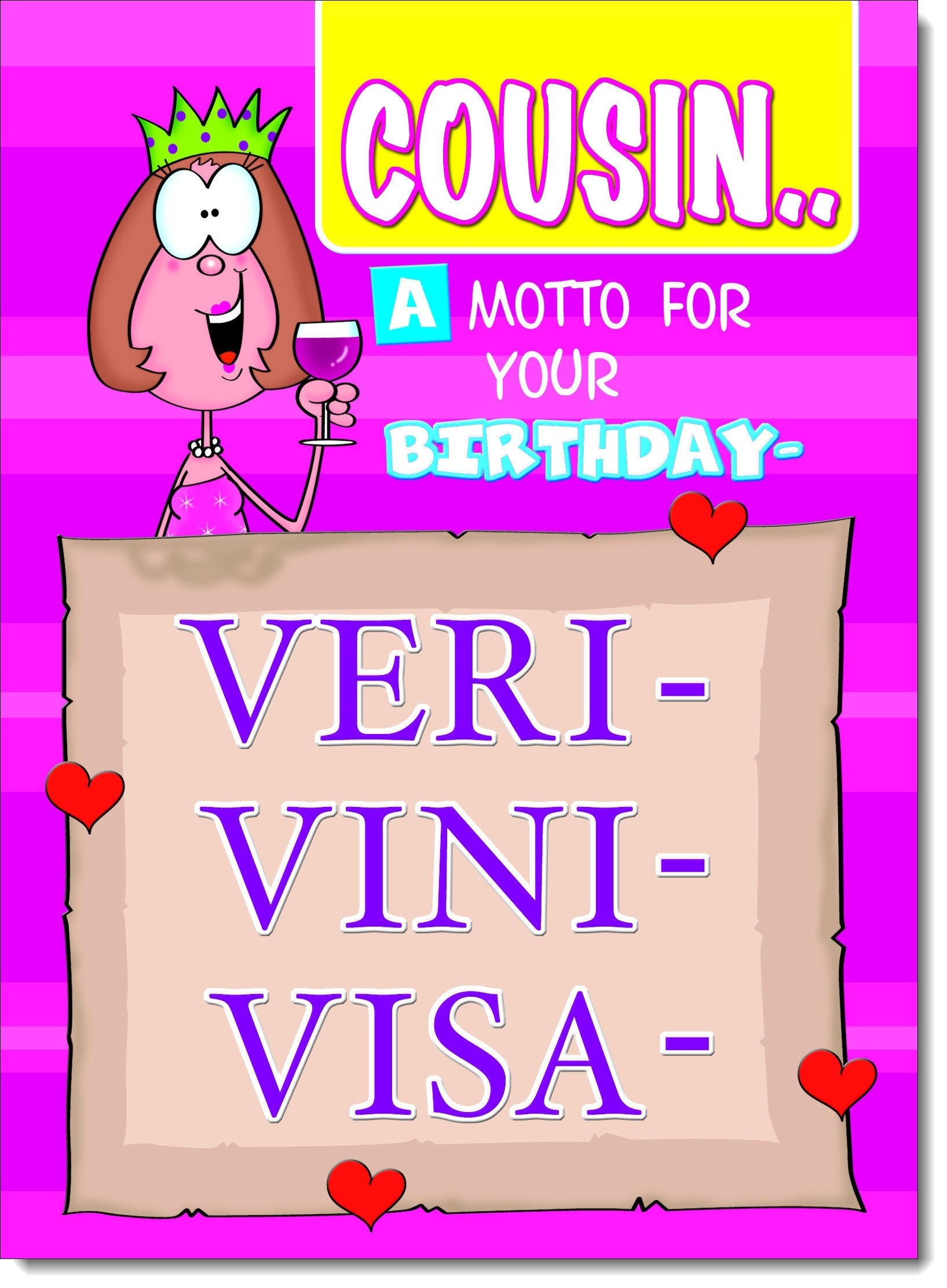 Cousin Birthday Card for Her Funny Shopping Birthday Motto
