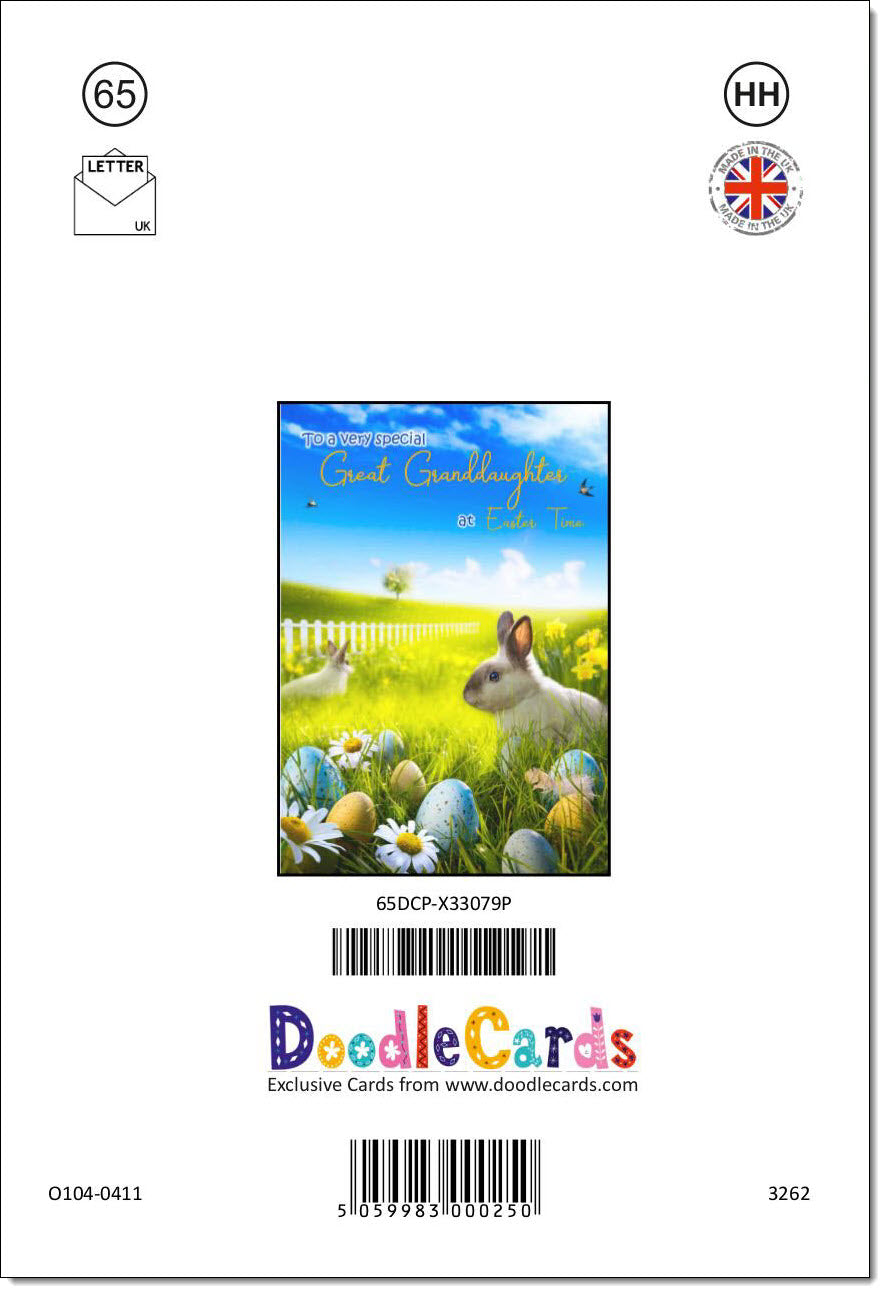 Great Granddaughter Easter Card Bunnies in Field