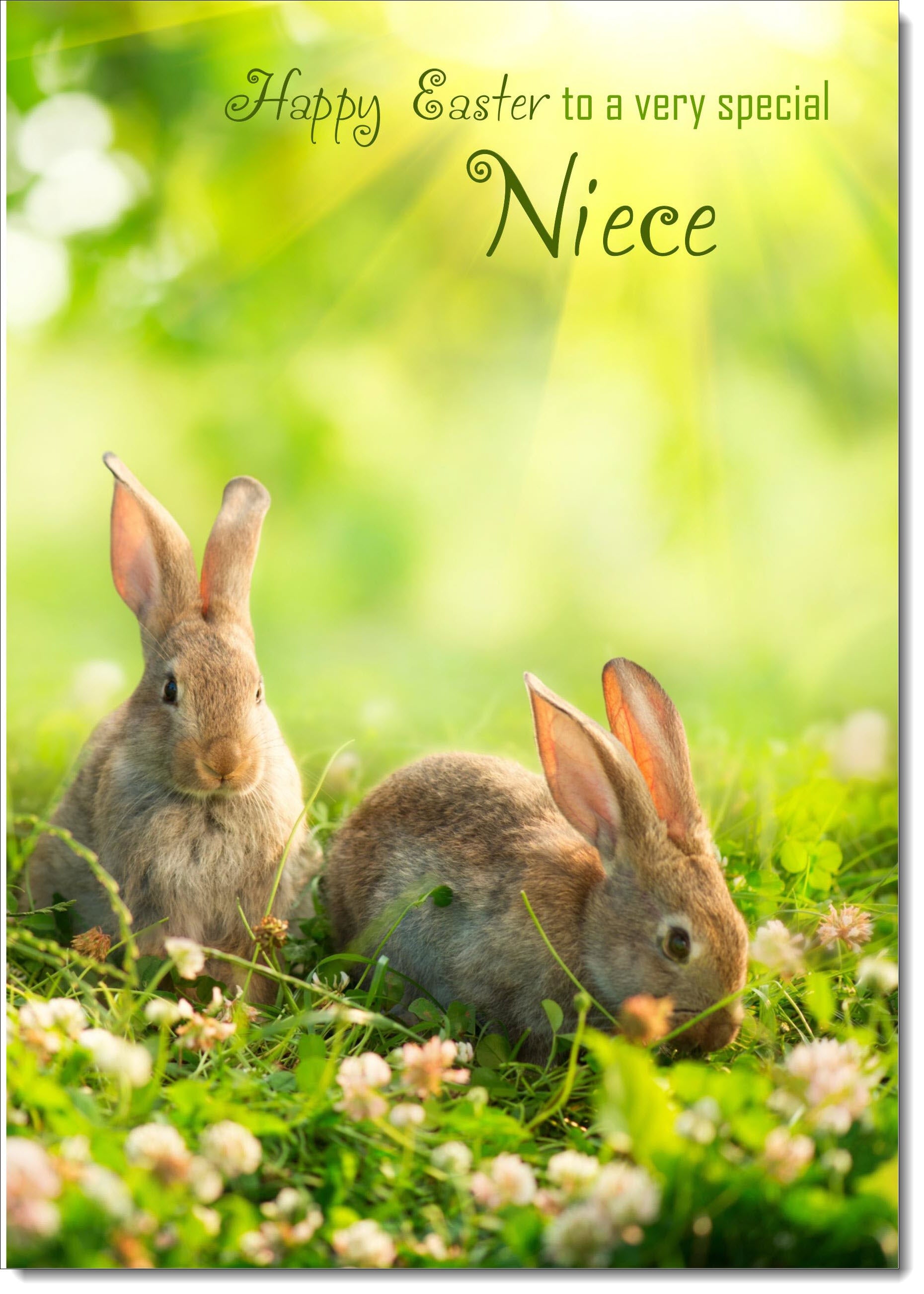 Niece Easter Card Two Bunnies on Grass