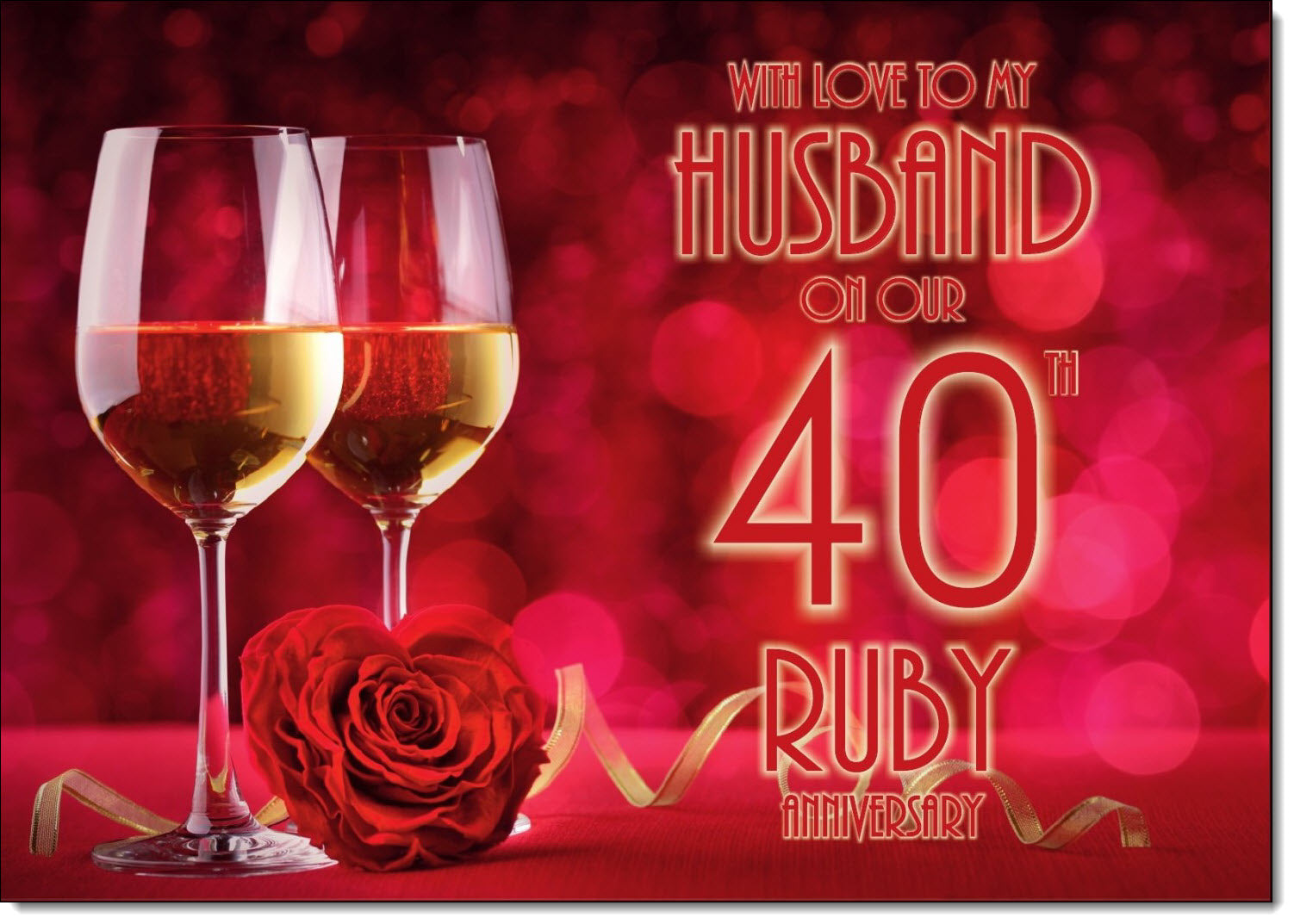 Husband Ruby 40th Wedding Anniversary Card Wine Glasses