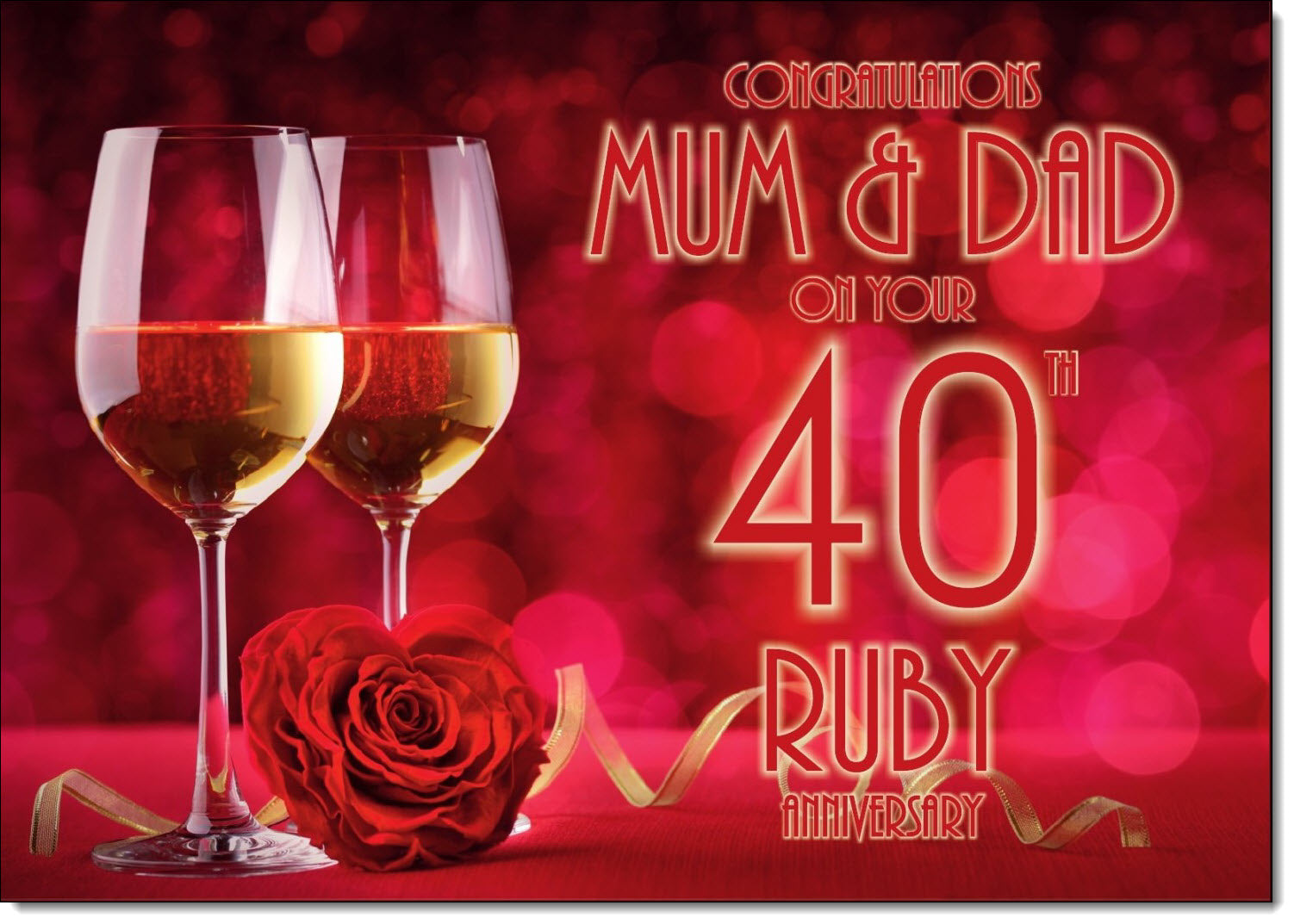 Mum & Dad Ruby 40th Wedding Anniversary Card Wine Glasses