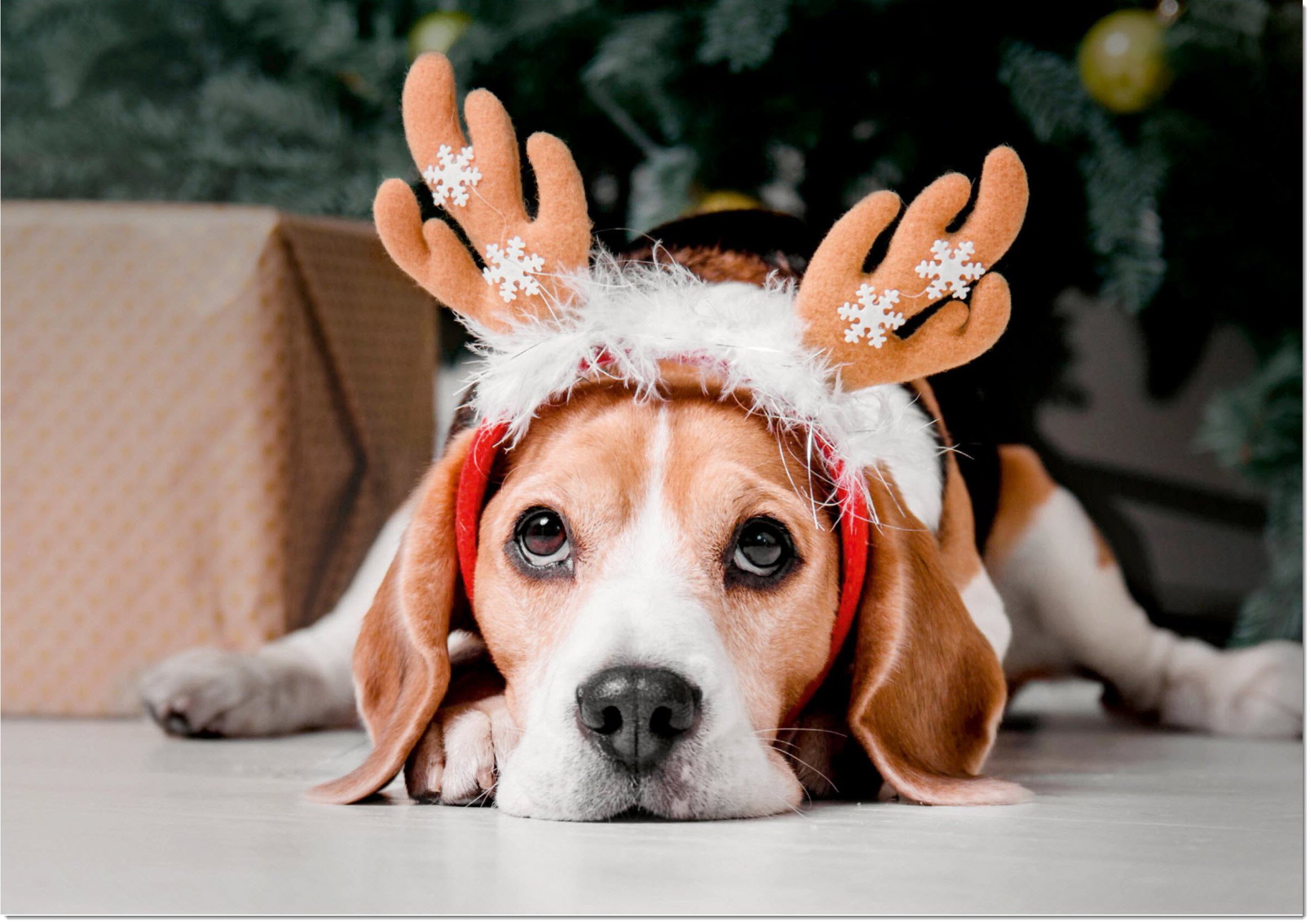 Christmas Card Beagle in Reindeer Antlers