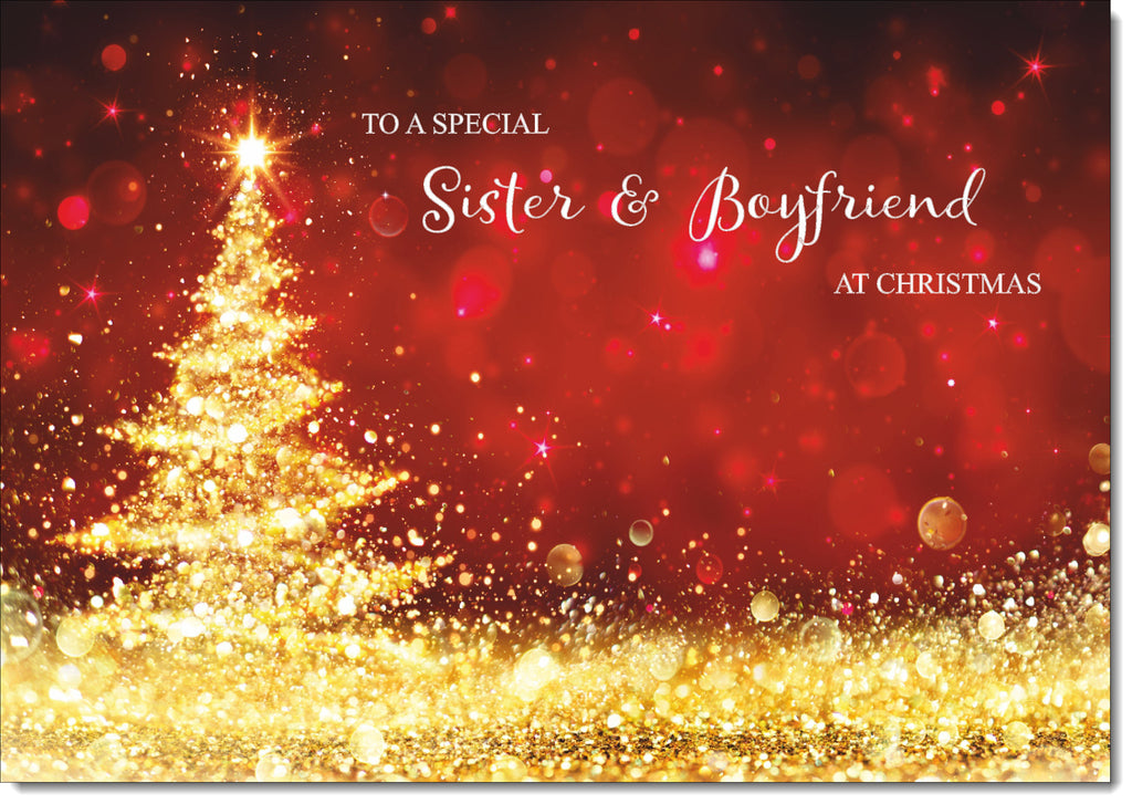 Sister & Boyfriend Christmas Card Gold Abstract ChristmasTree